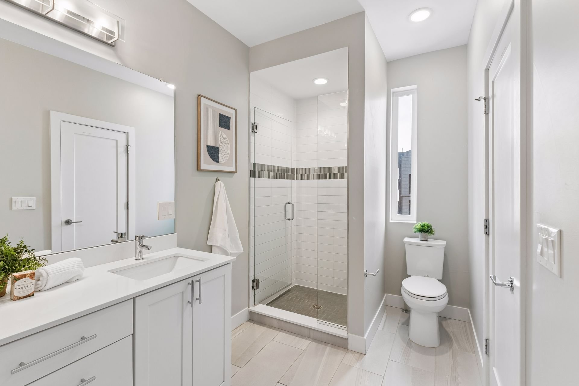 The third level offers two additional bedrooms, both generously sized with plenty of natural light, connected by a double-entry bathroom, and a laundry closet (washer/dryer included).