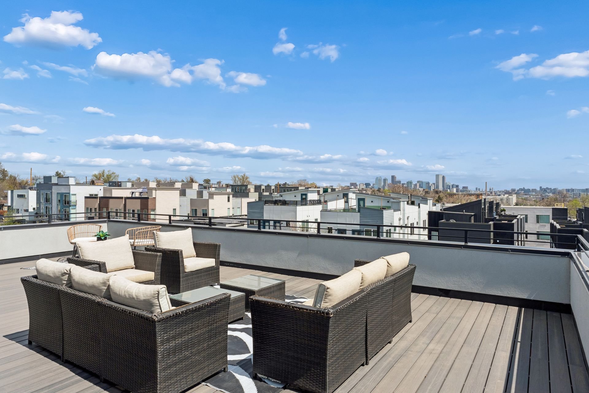 The extra-large rooftop deck is a total show-stopper and features spectacular 360-degree views of the mountains and downtown Denver, yet still retains privacy from neighboring units.