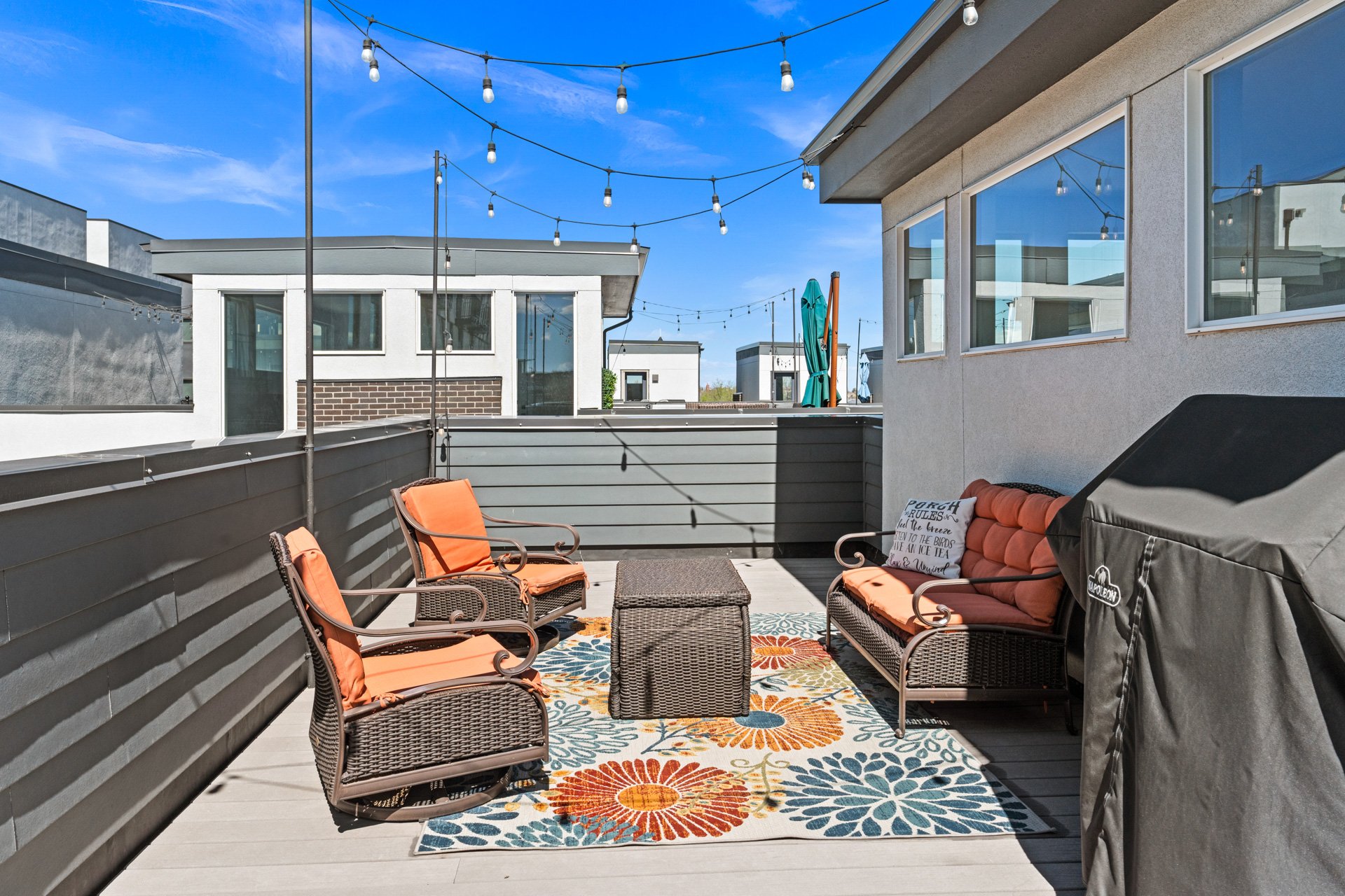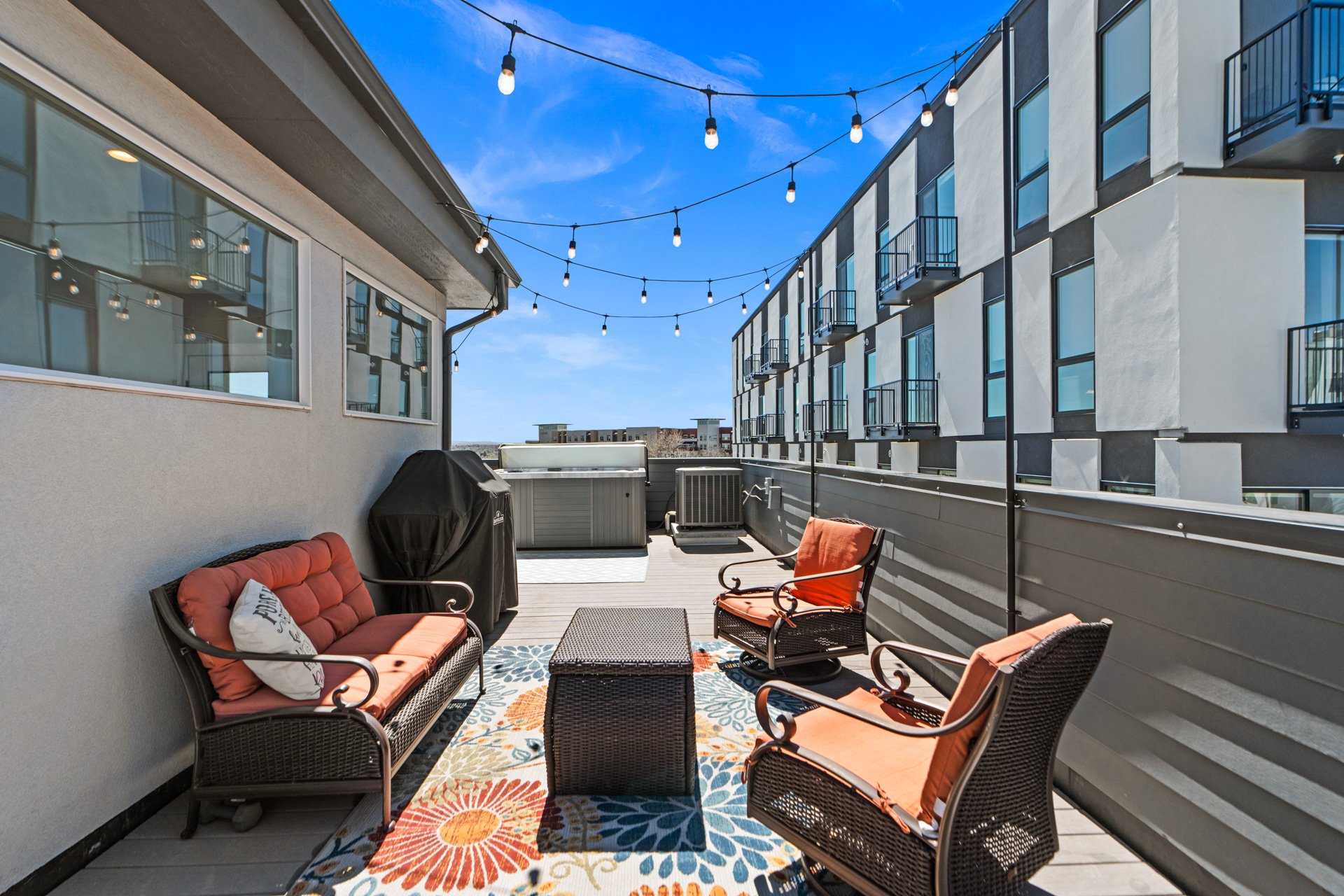 The rooftop deck is incredible--originally noted as having “the best views in the complex"--with mountain views to the west, uninterrupted views extending south across Denver, long sightlines, the ability to view sunrises and sunsets, and a sense of openness that is rare in this location.