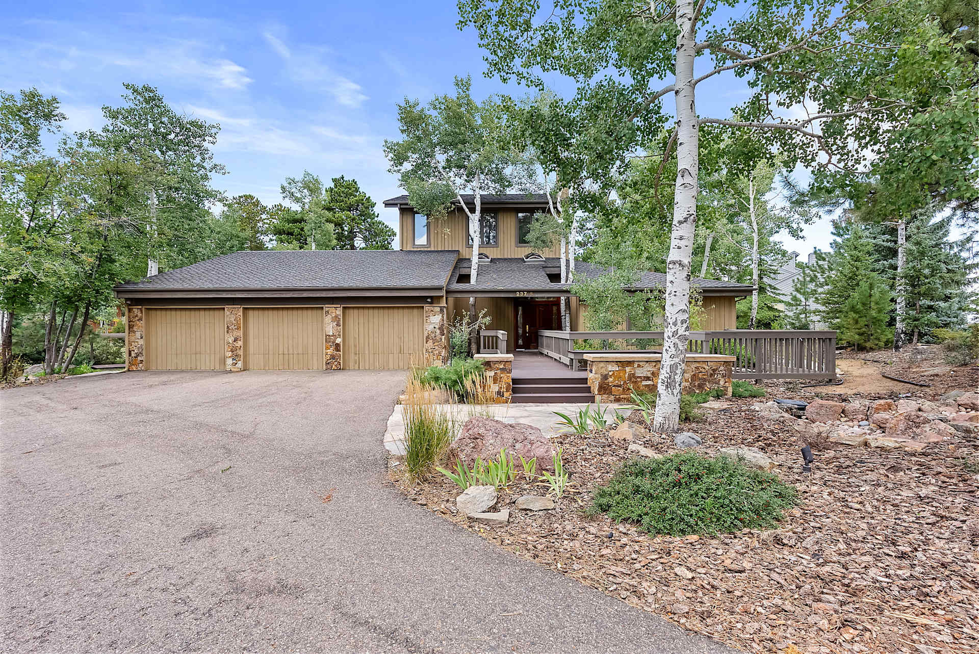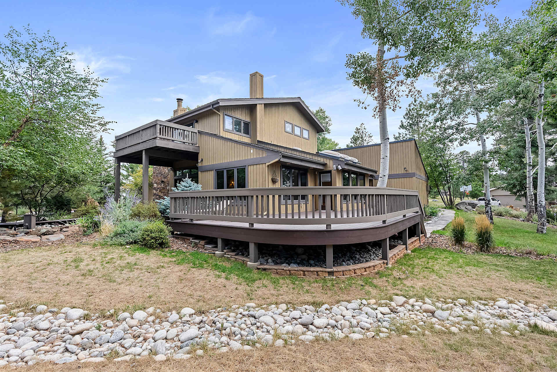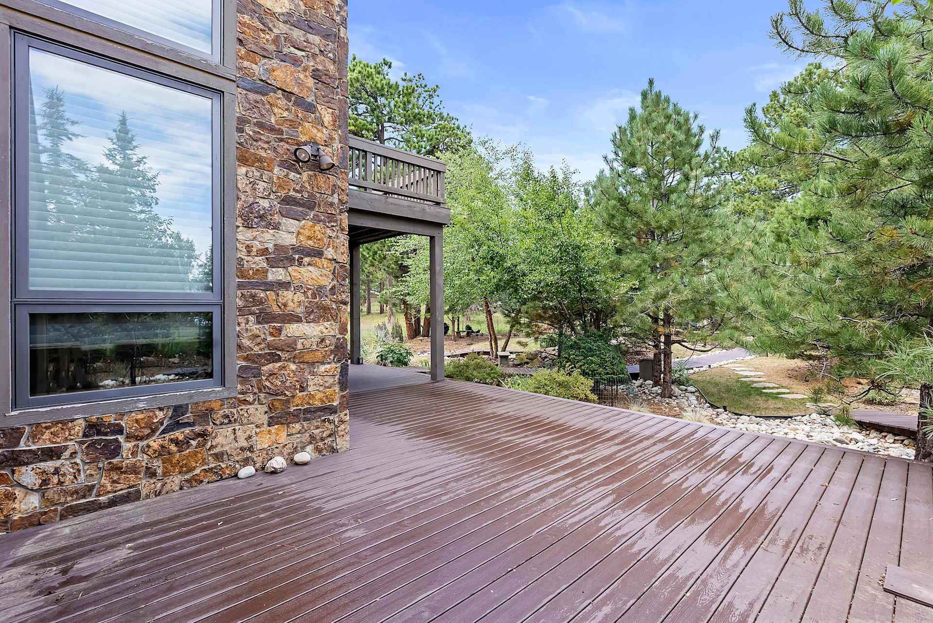 Rarely will you find a property with a more functional outdoor space--the large, wrap-around deck, upper balcony, exterior stone fireplace (original to the first cabin built on this site), front and back water features, mature trees, extensive landscaping, and mountain views will take your breath away.