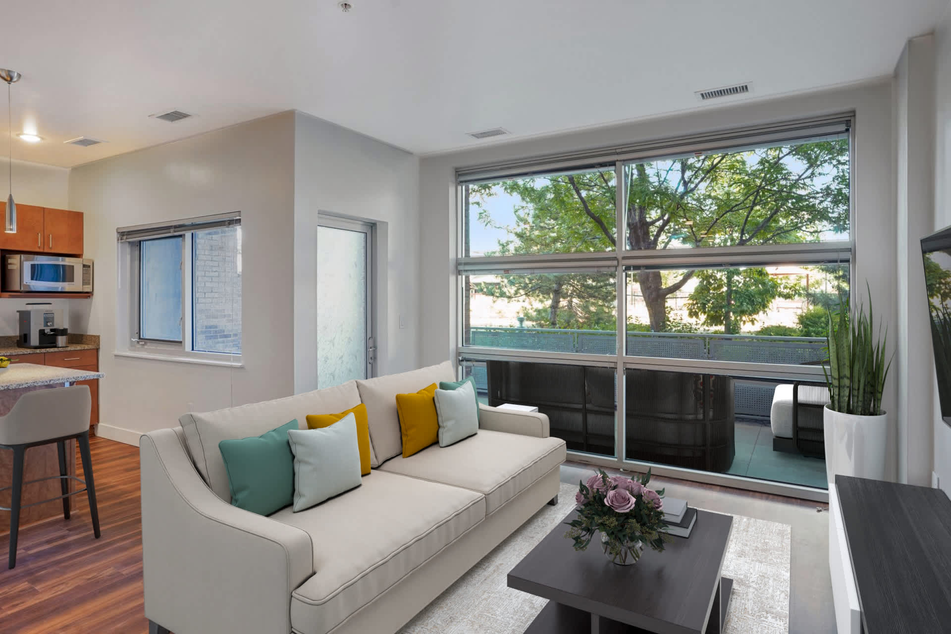 The location is absolutely incredible with groceries, restaurants, shops, the farmer's market, and much more are all within just a few blocks--plus it offers easy access to numerous public parks, an off-leash dog park, recreation centers, swimming pools, athletic fields, playgrounds, downtown Denver, the CU Anschutz medical campus, and the Denver International Airport.