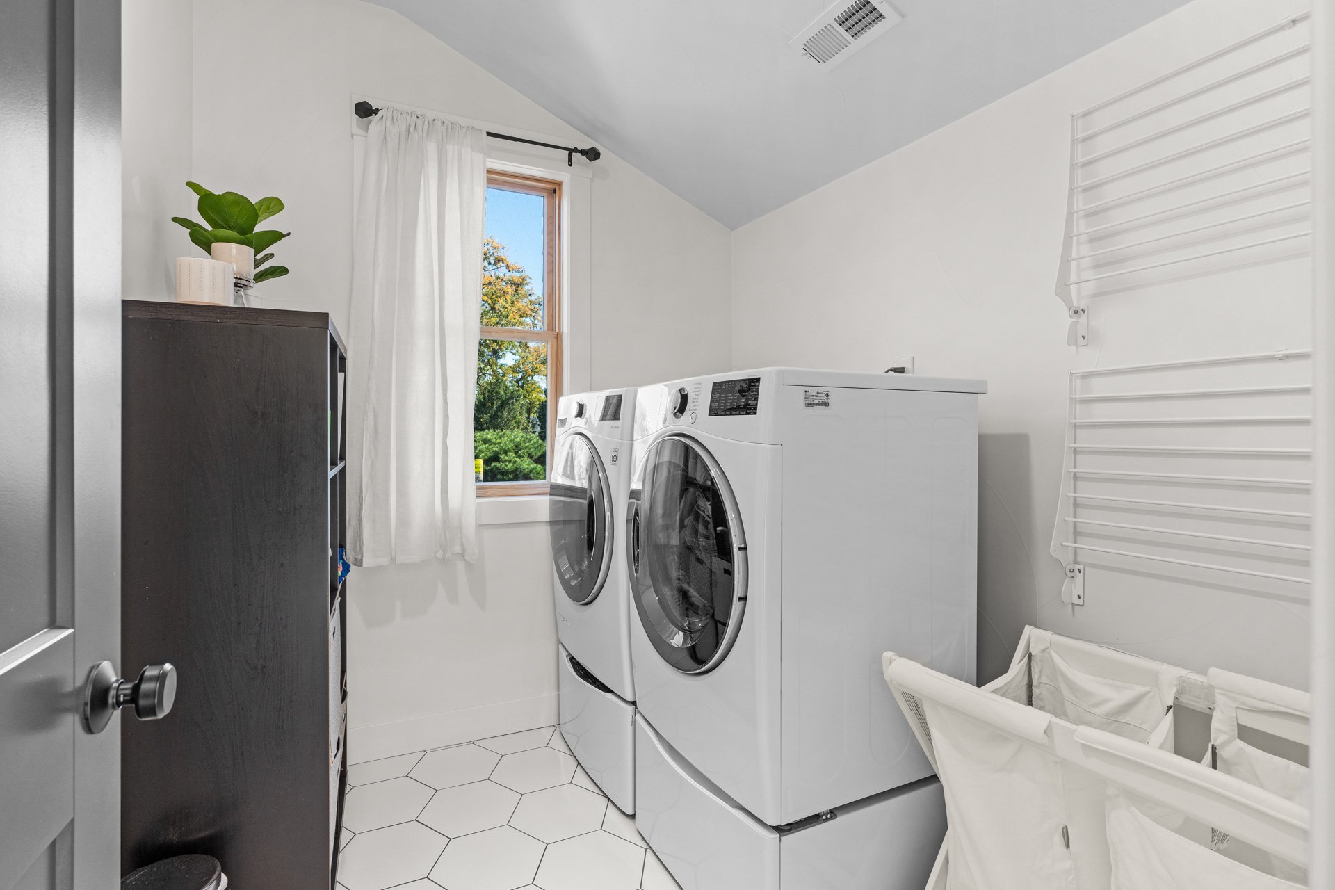 Two additional bedrooms with vaulted ceilings, a full bathroom, and a conveniently located laundry room (washer/dryer included!) complete the second floor.