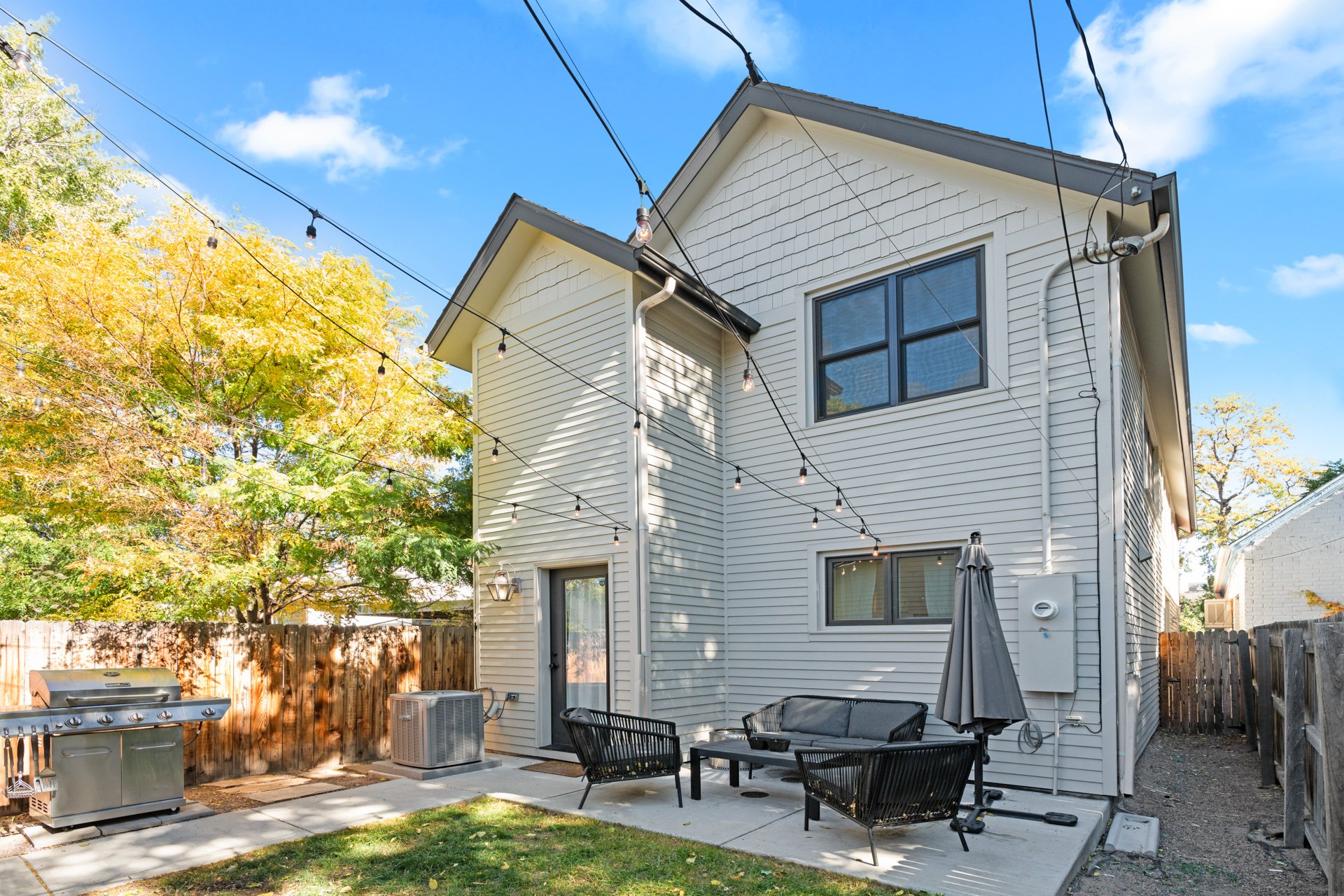 The fenced yard includes a grass area and a patio-perfect for entertaining, and the front/rear patio furniture and grill are included!