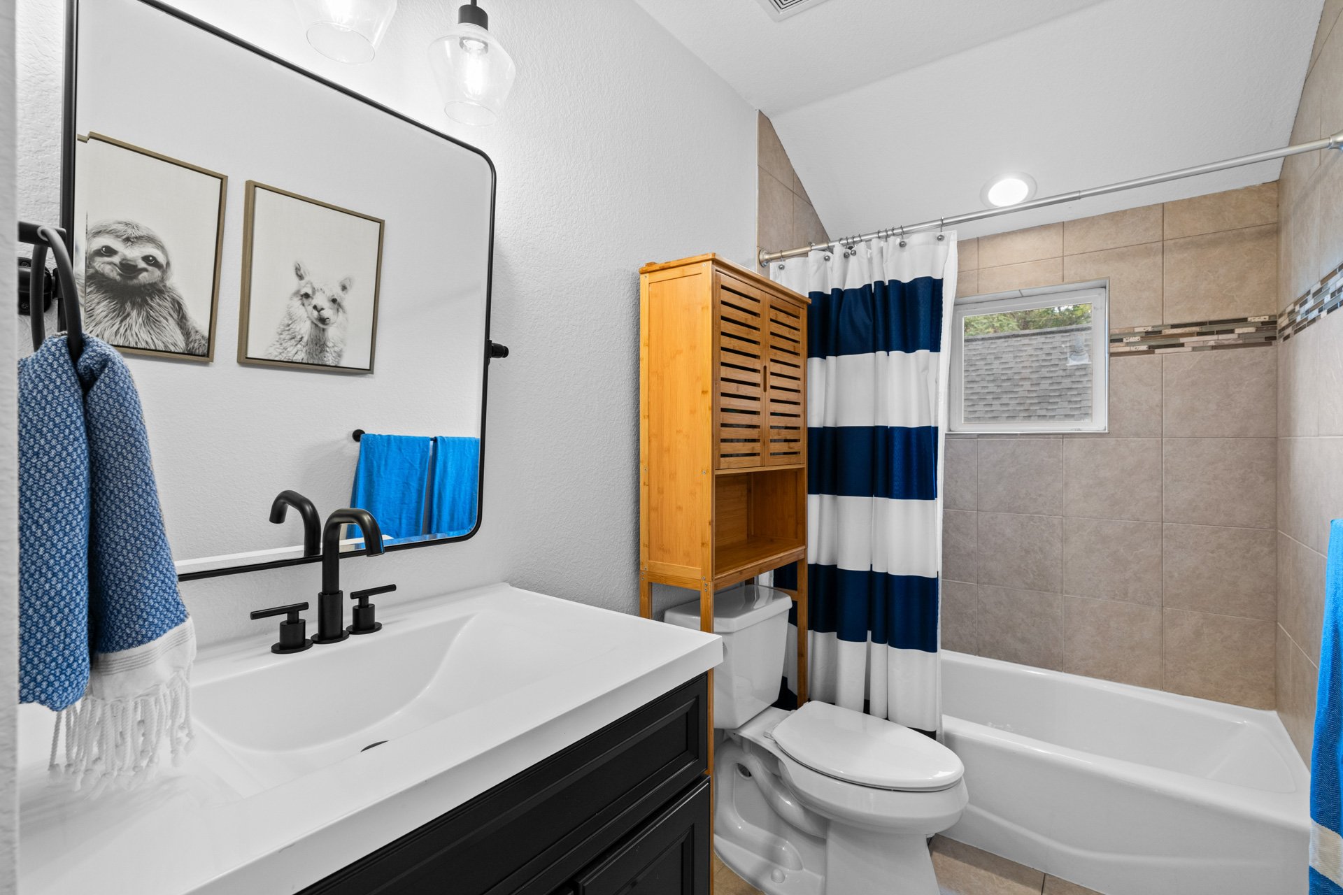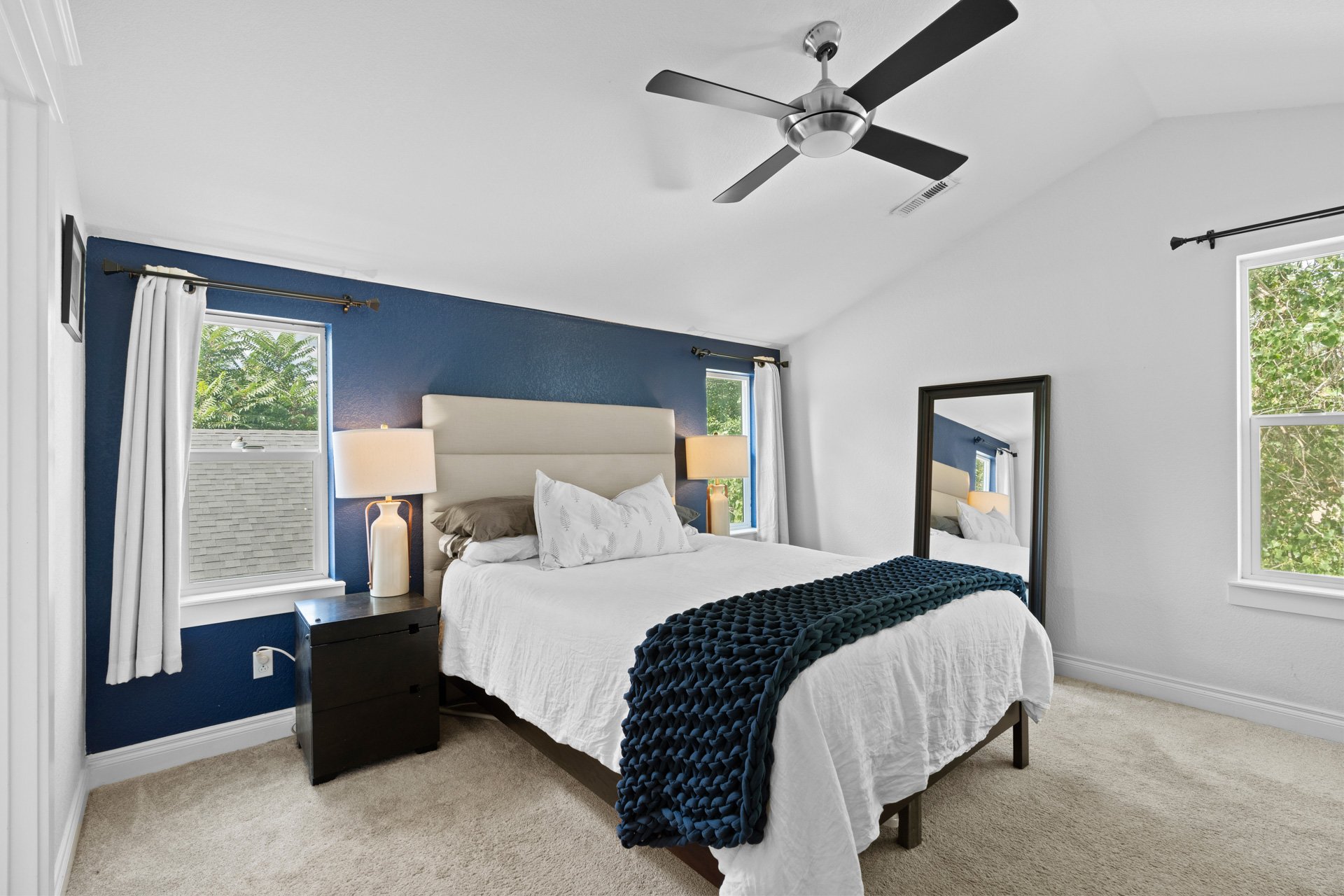 The upper level offers three bedrooms on the same level, including a primary suite with an en suite bathroom and walk-in closet, two additional bedrooms, and a full hallway bathroom.