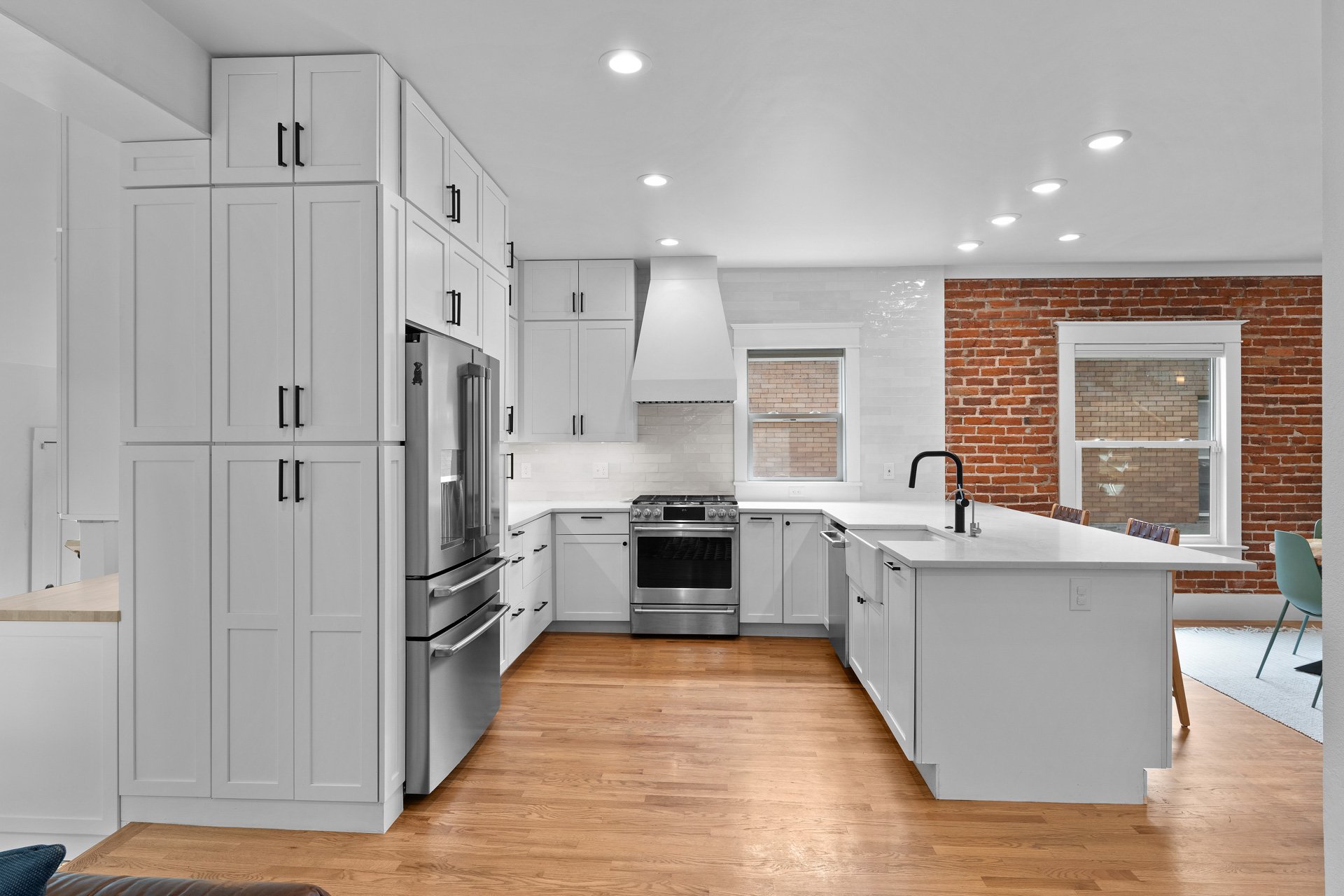 The main level will take your breath away with its open floor plan, exposed brick, recently refinished hardwood floors, and impeccable finishes throughout.