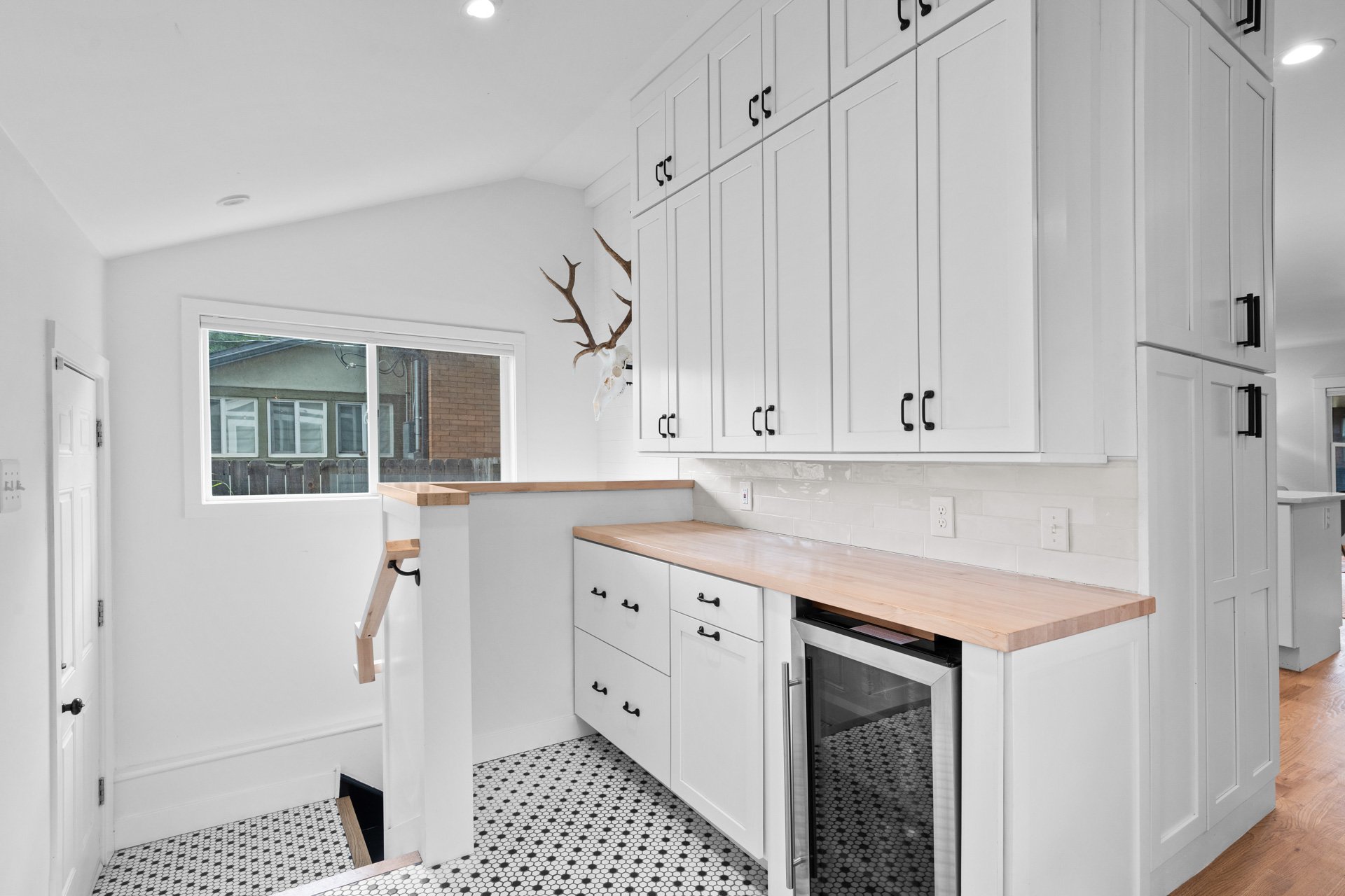 A family room adjacent to the kitchen offers fantastic additional main level living space, and a stylish powder room and spacious mud room with a bar fridge and abundant storage complete the main living level.
