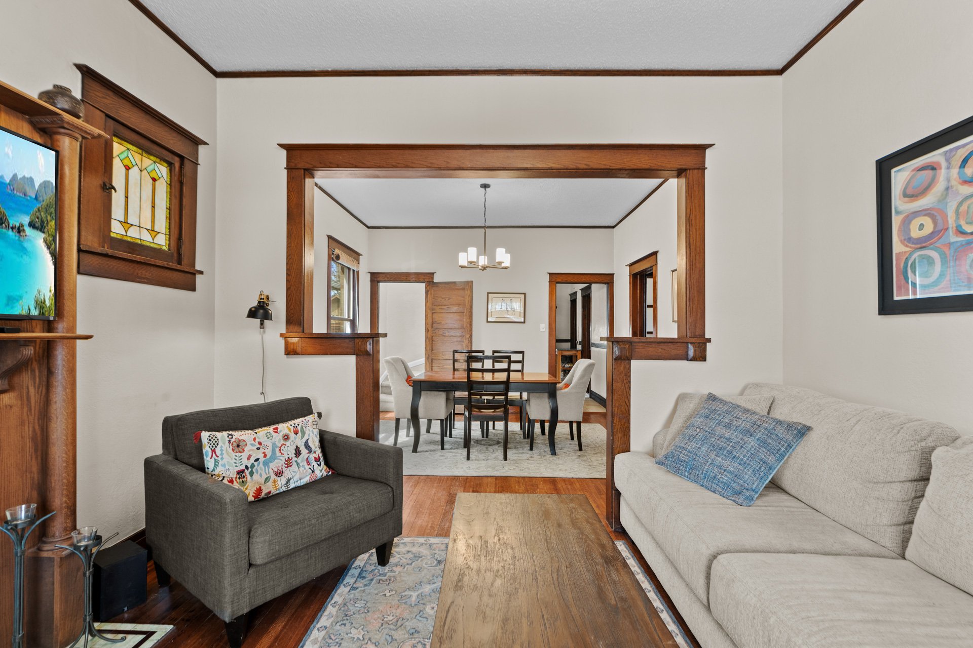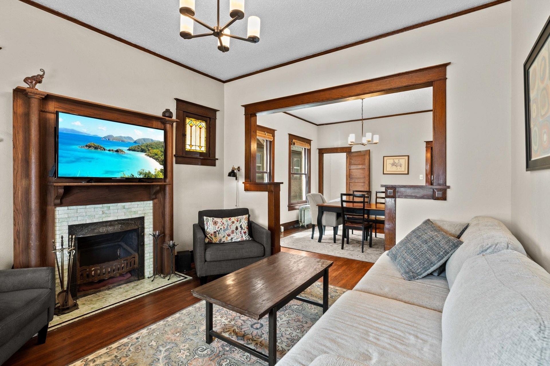 Built in 1912 and framed by mature trees, this 4-bedroom, 4-bathroom home welcomes you in with its recently updated xeriscaped front yard and charming front porch.