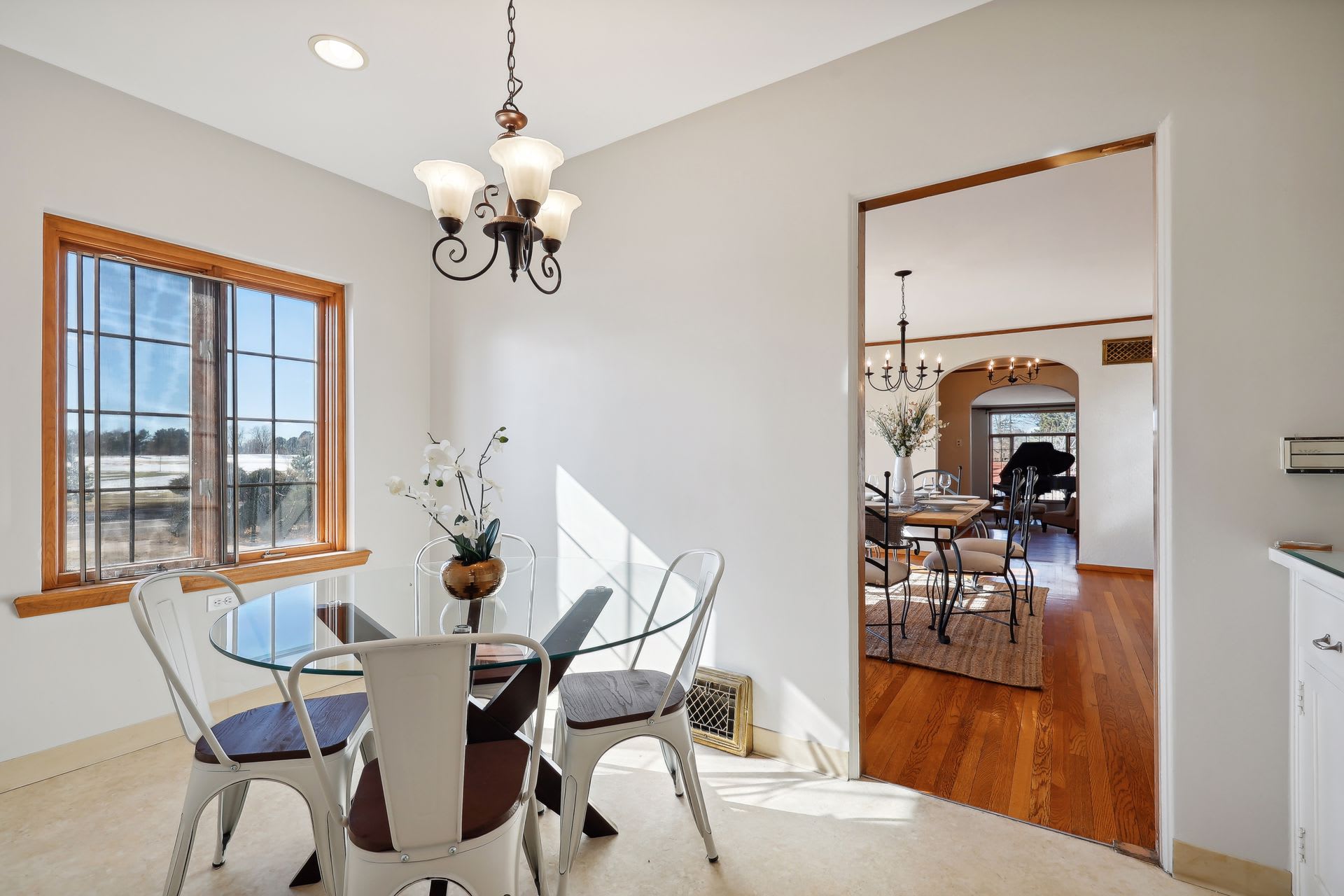 The dining room and casual breakfast area (and its connected covered patio) are great spaces to enjoy morning coffee, meals, and sunsets over the mountains.