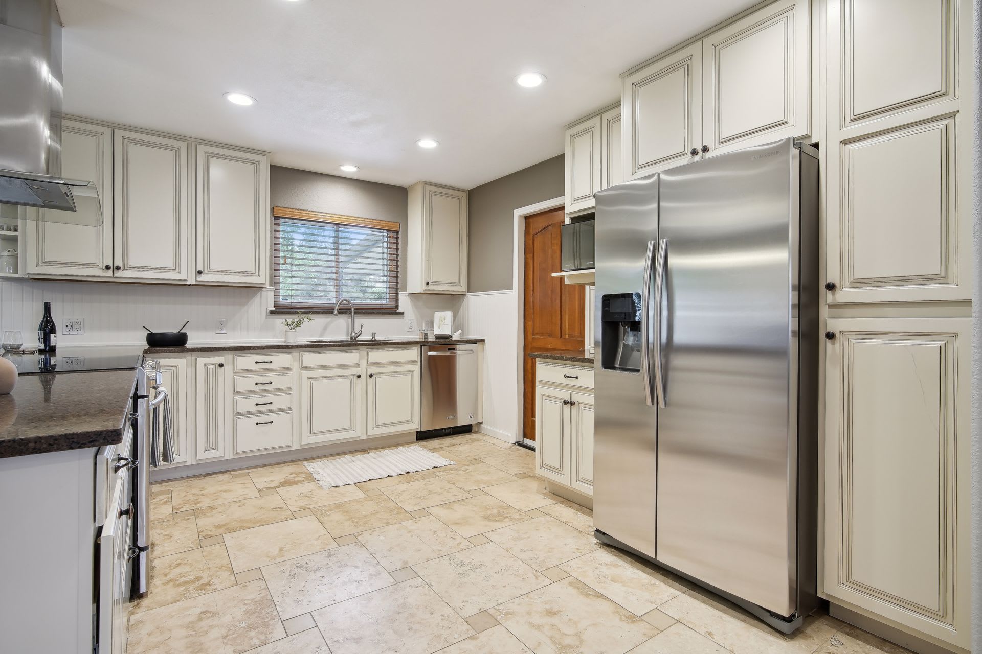 The main level of this lovely home features a wonderful kitchen with quartz countertops and stainless steel appliances, an open layout, newly refinished gleaming wood floors, 3 bedrooms (including one that is currently set up as an office with a built-in desk--could be converted back to be used as a bedroom if needed), 2 fully updated bathrooms (one is a primary ensuite bathroom), and more.