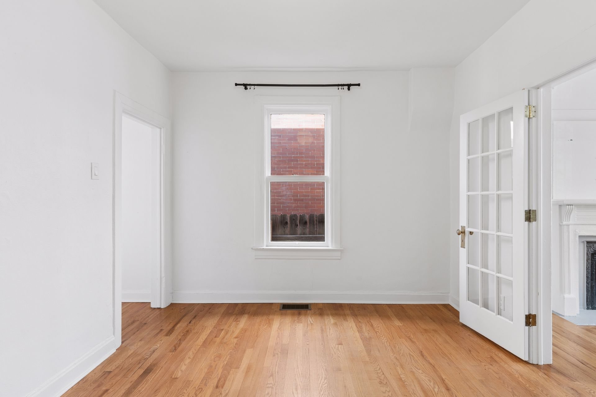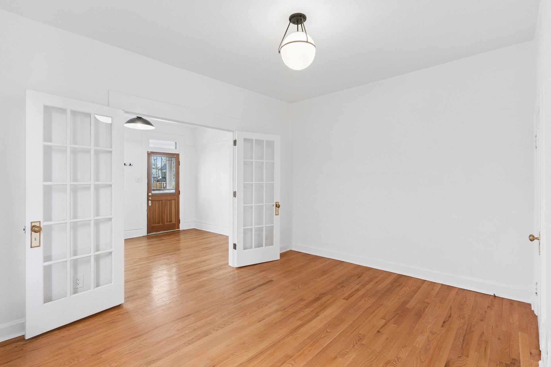 Just off the living room, a set of French doors opens to a versatile room with a closet, ideal as a bedroom, dining room, or home office.