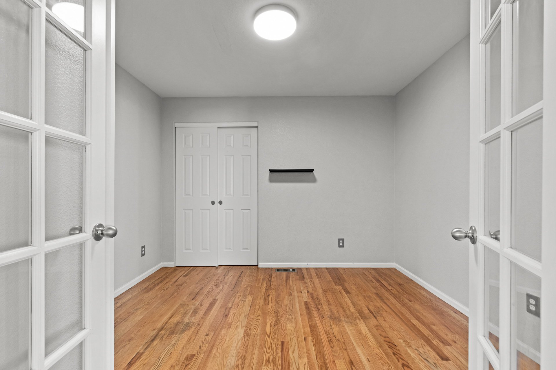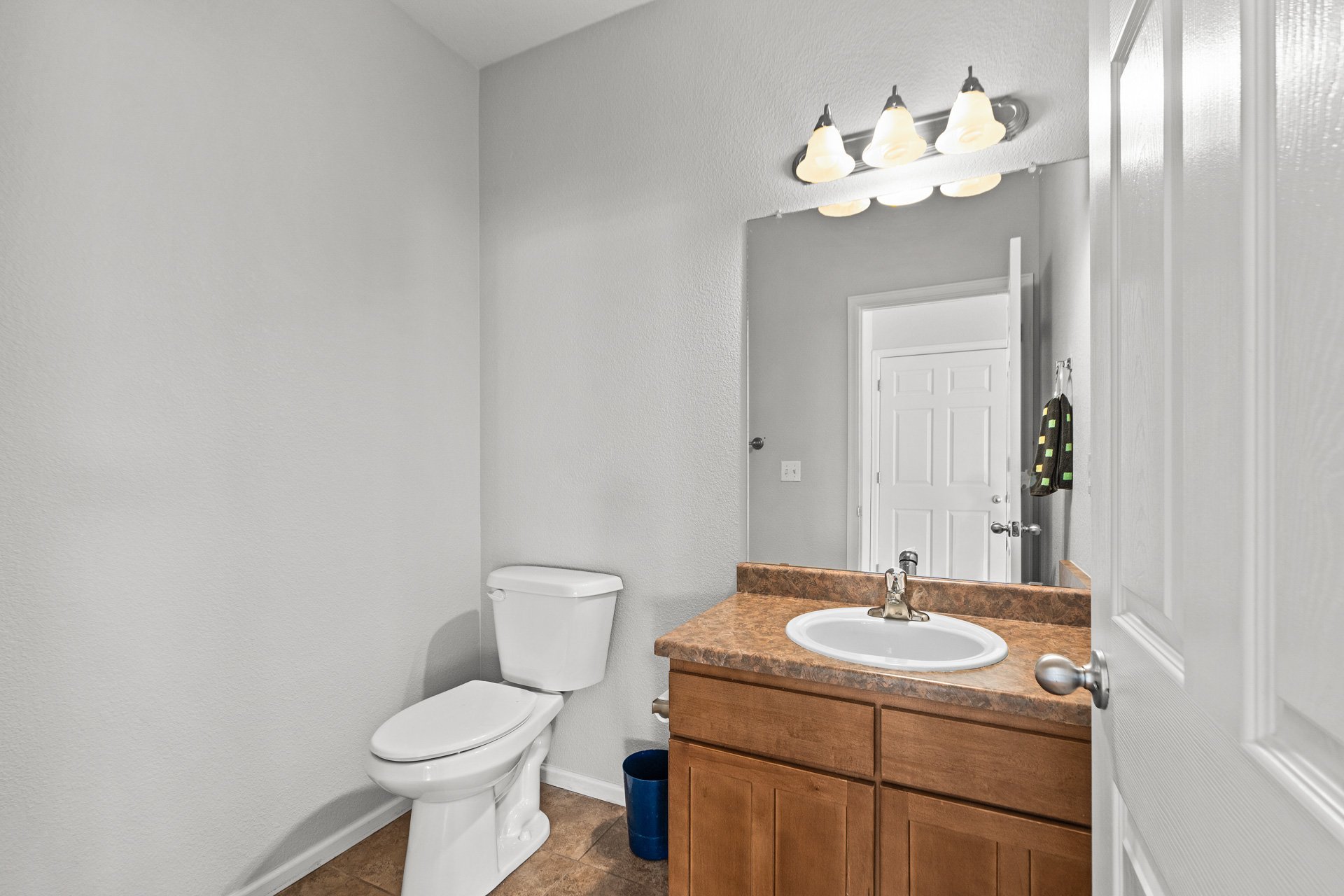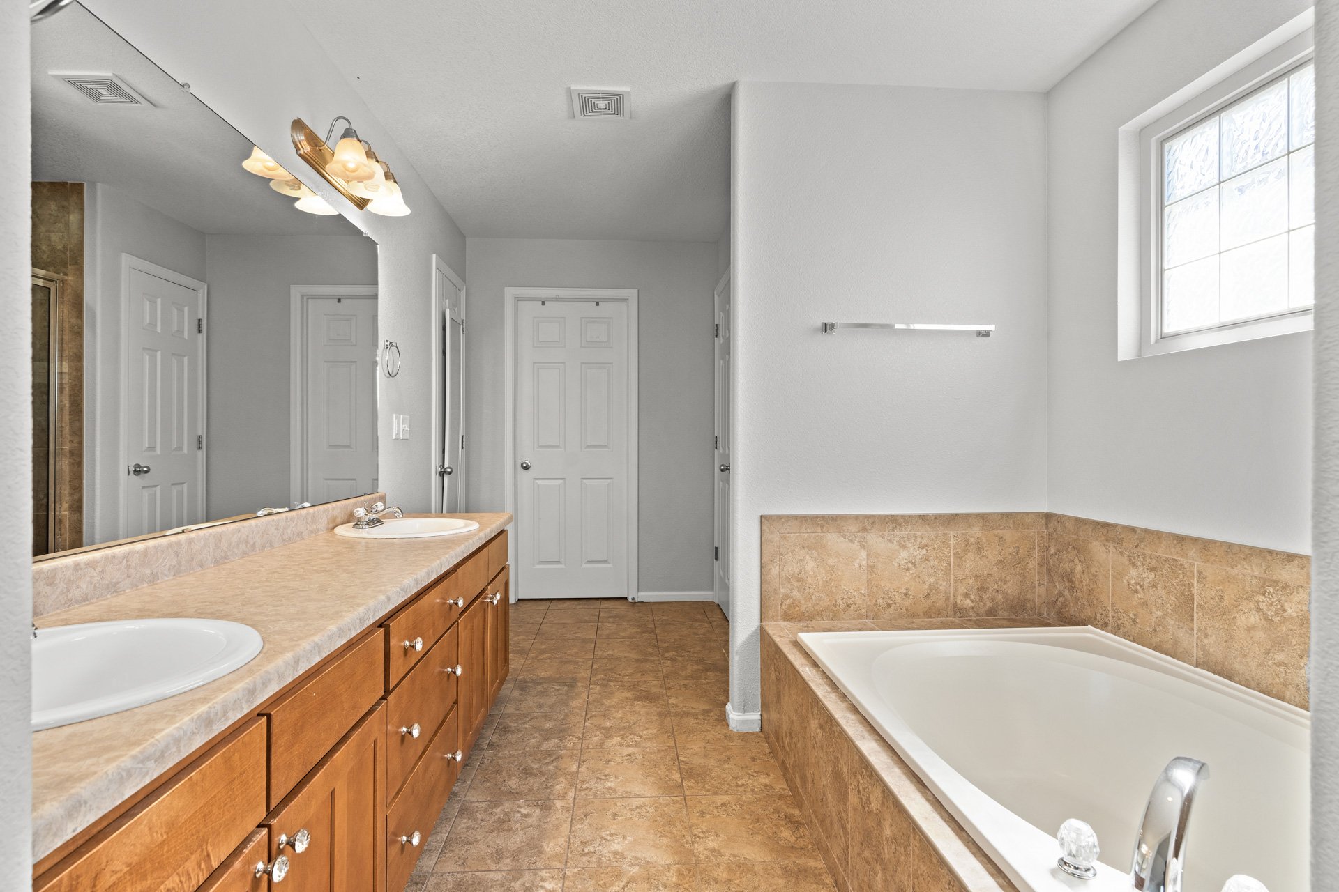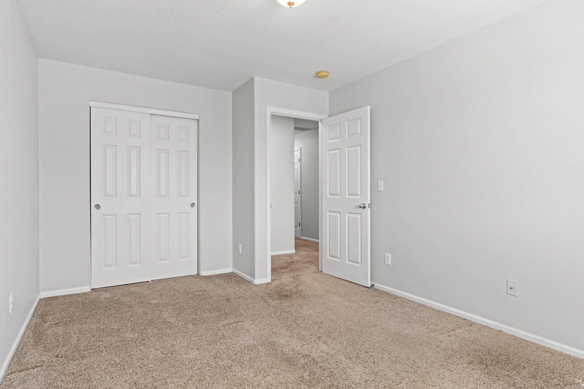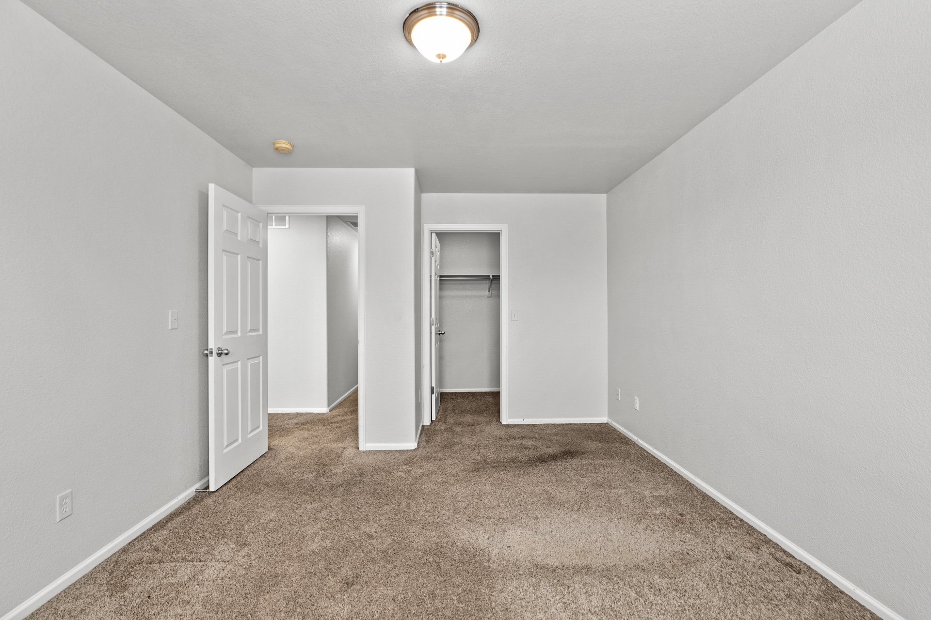 Two additional bedrooms, one with a walk-in closet and one with a reach-in closet, are served by a full hallway bathroom with a double vanity.