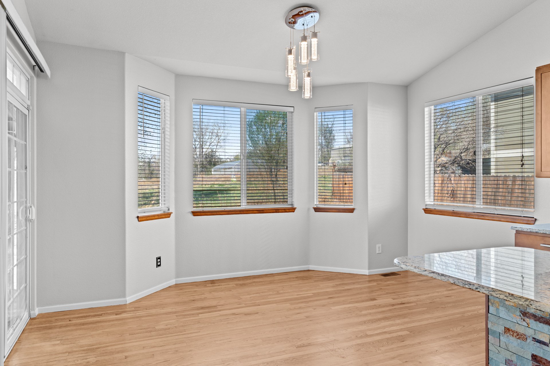 Outside, you'll enjoy the covered patio, private yard, and views from the open space to the mountains.