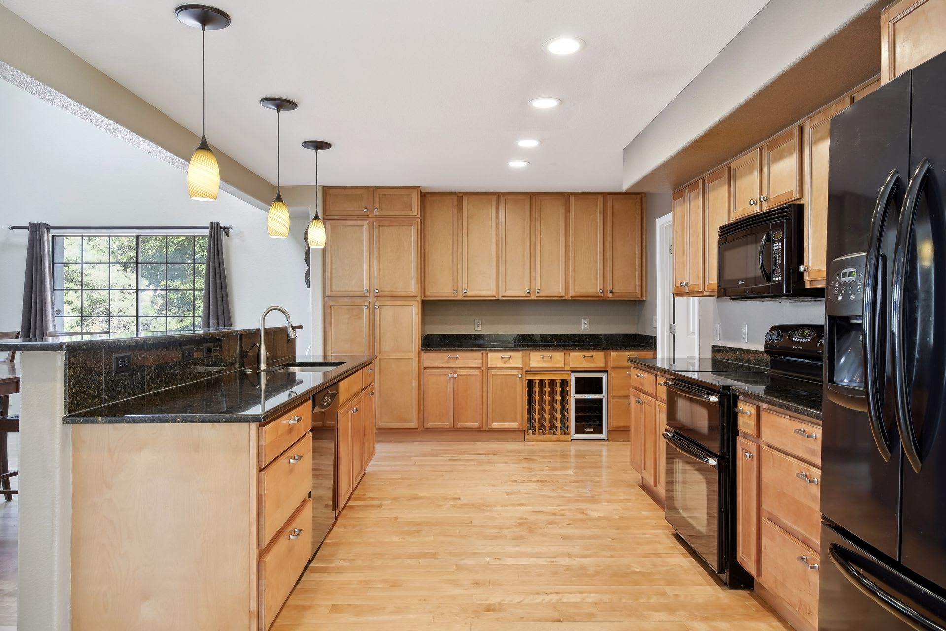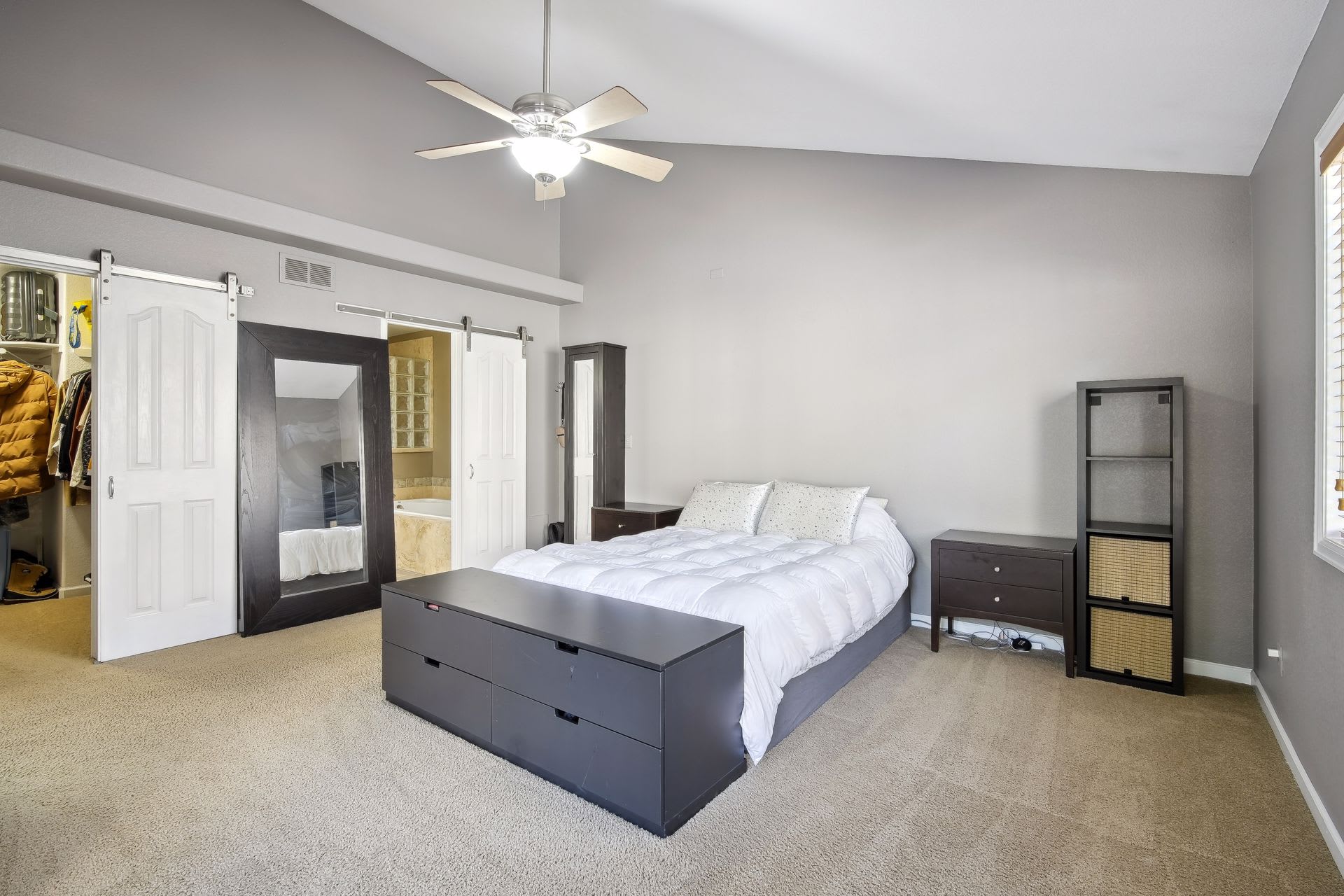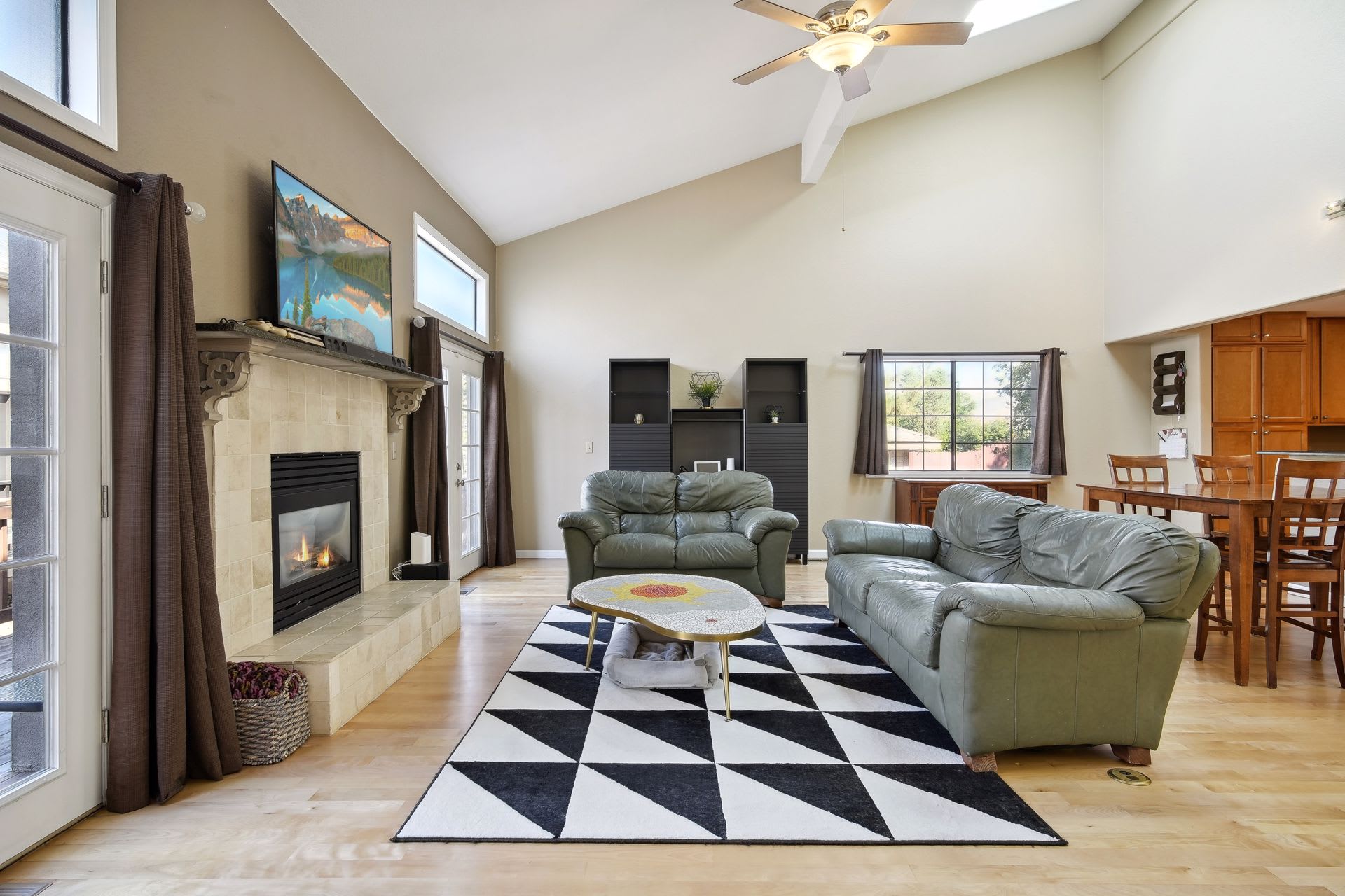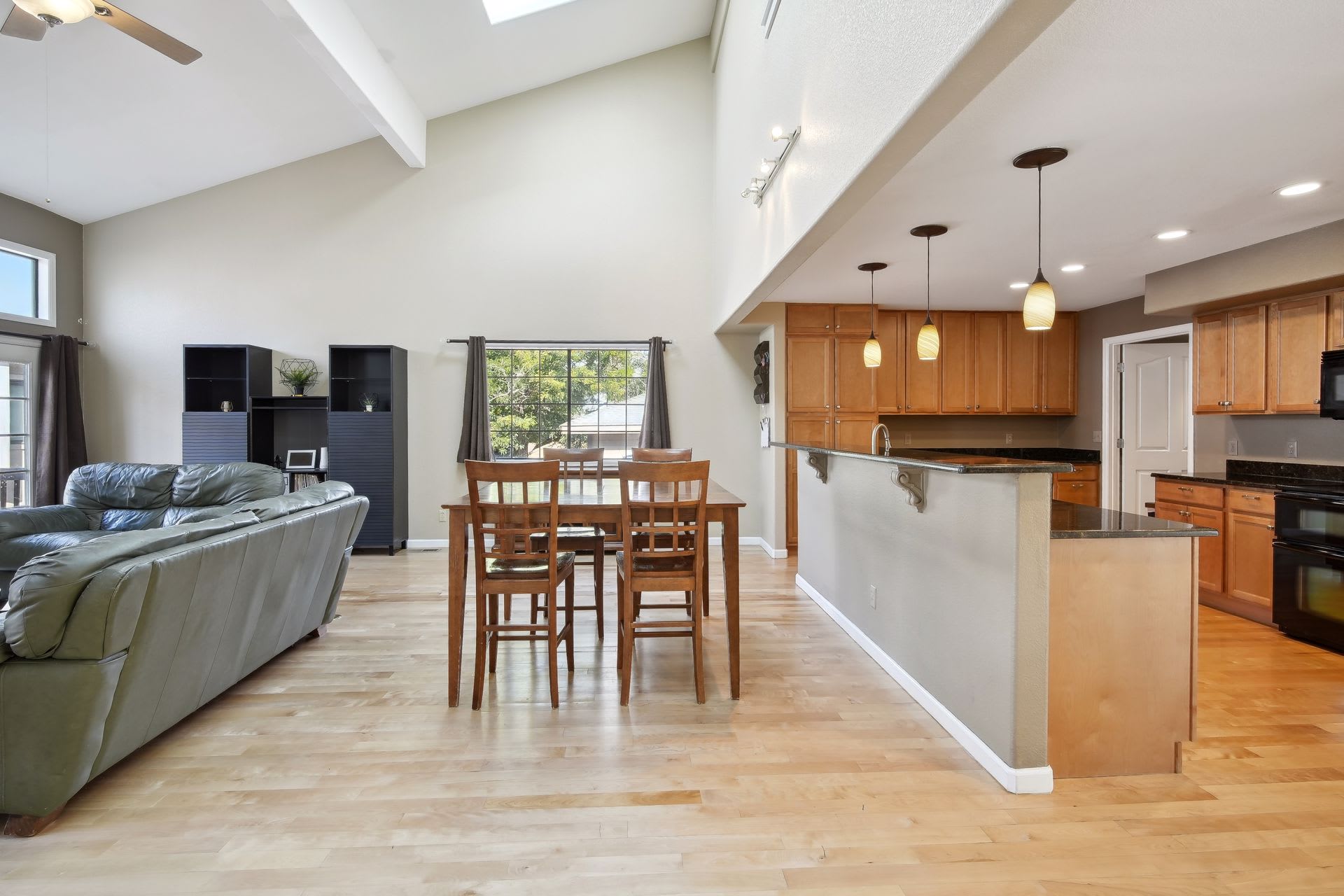 The interior lives large with its wide open layout and high vaulted ceilings. The kitchen is amazing, offering an enormous amount of functional space for cooking the most delicious meals!