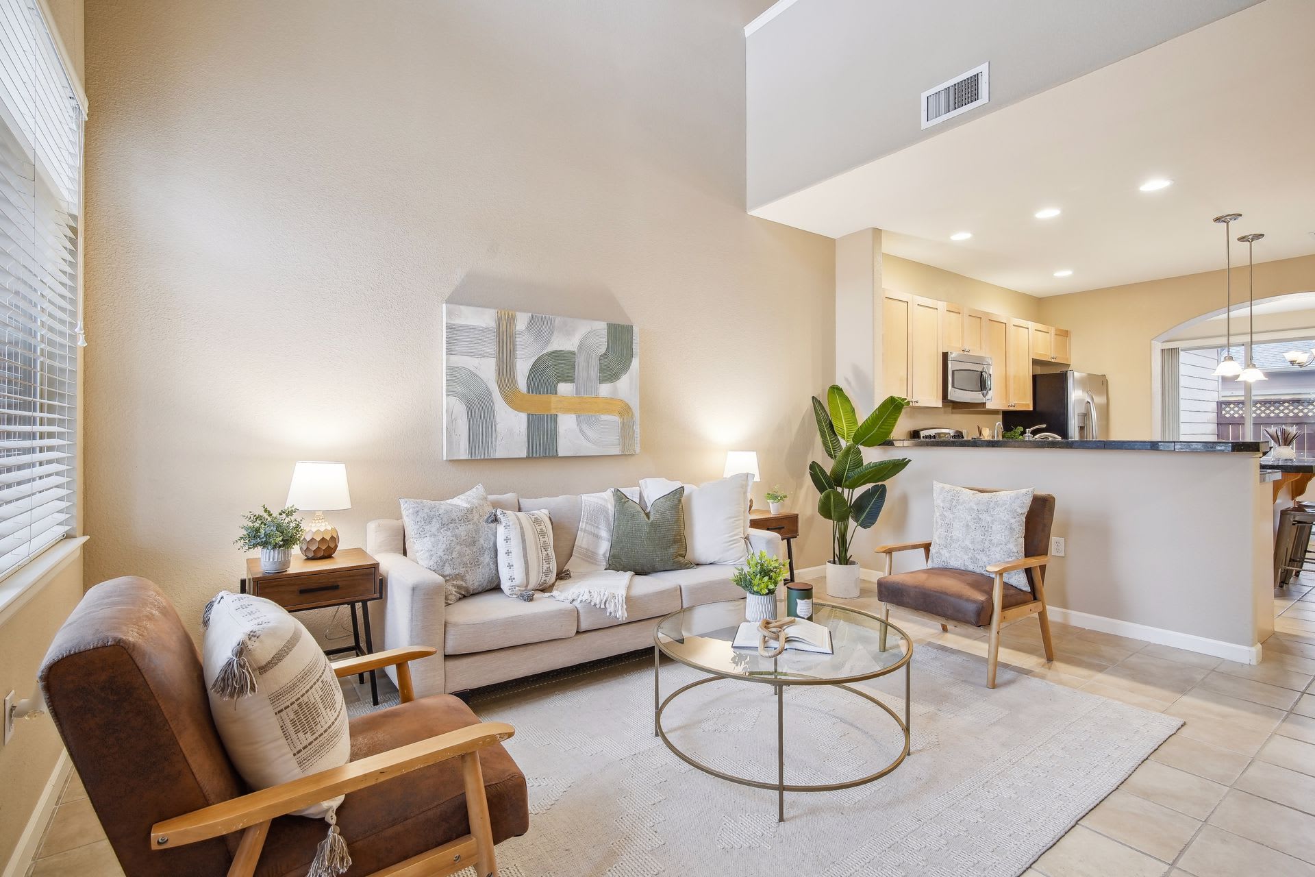 This completely turn-key unit was the model home for the neighborhood and features stainless steel appliances, an open main level layout with soaring two story ceilings in the living room, a main level primary bedroom with an incredible walk-in closet featuring custom California Closets shelving, in-unit laundry (washer/dryer INCLUDED), two additional upstairs bedrooms, an open loft area, a bonus room (perfect for a work from home office), a private back patio, video doorbell, an oversized attached 2-car garage with an electric vehicle charging outlet, a rare oversized third detached garage space for an extra vehicle and/or storage, and more!