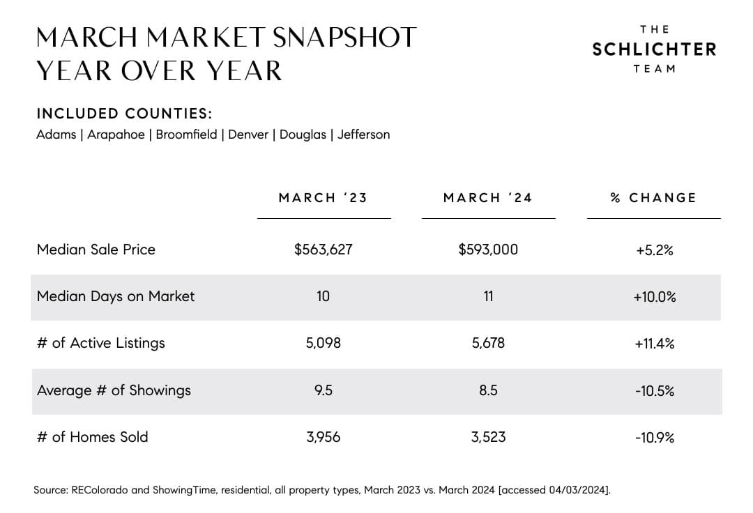 As the weather warms up, the Denver real estate market usually tends to heat up as well. This year, the market is still inconsistent, with some listings selling very quickly for over the asking price and others lasting on the market much longer than sellers would prefer. On a year-over-year basis, most metrics show the market cooling down slightly. For example, the number of active listings was up about 11% (which is great for buyers), but the number of homes sold was down about 11% (not ideal for sellers). Showing activity was down about 10% (not great for sellers), and days on market were up about 10% (more power for buyers). In spite of these numbers, prices ended up rising about 5% YOY.