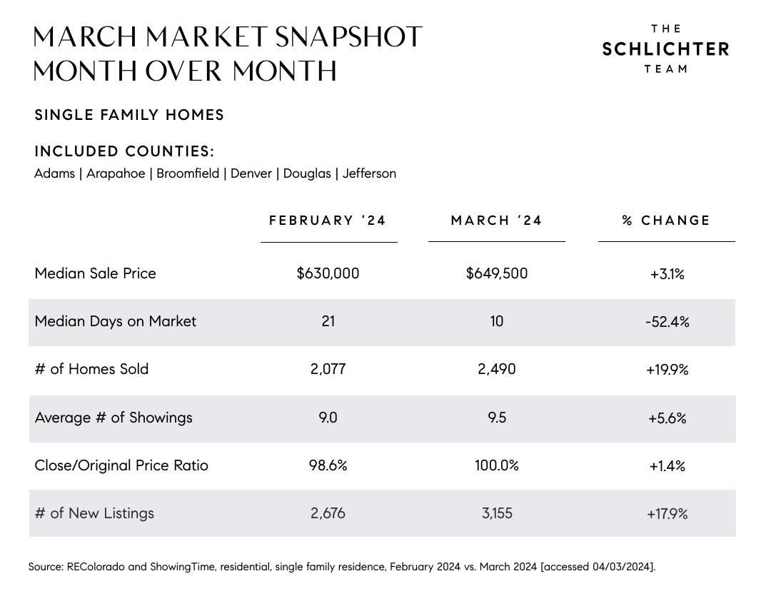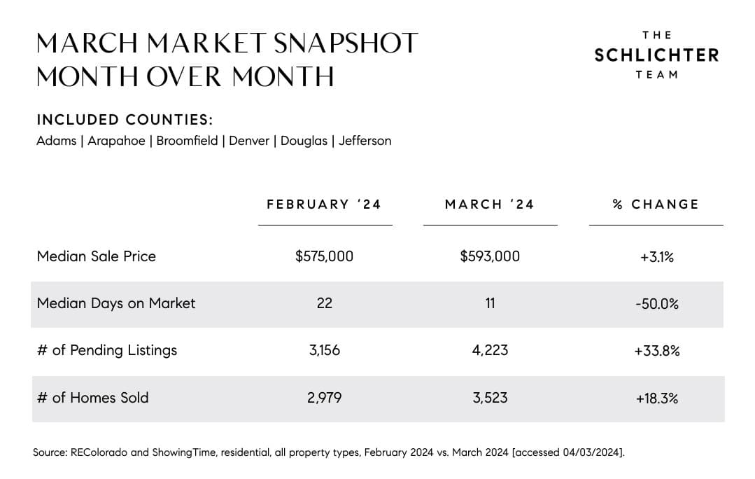 When you look at the market on a month-over-month basis, though, the data is more encouraging for sellers. The median days on market decreased by 50%, the number of pending listings increased by roughly 34%, the number of homes sold increased by about 18%, and the median sale price increased about 3%. There are still lots of opportunities for buyers out there, but the competition is starting to heat up compared to last month.