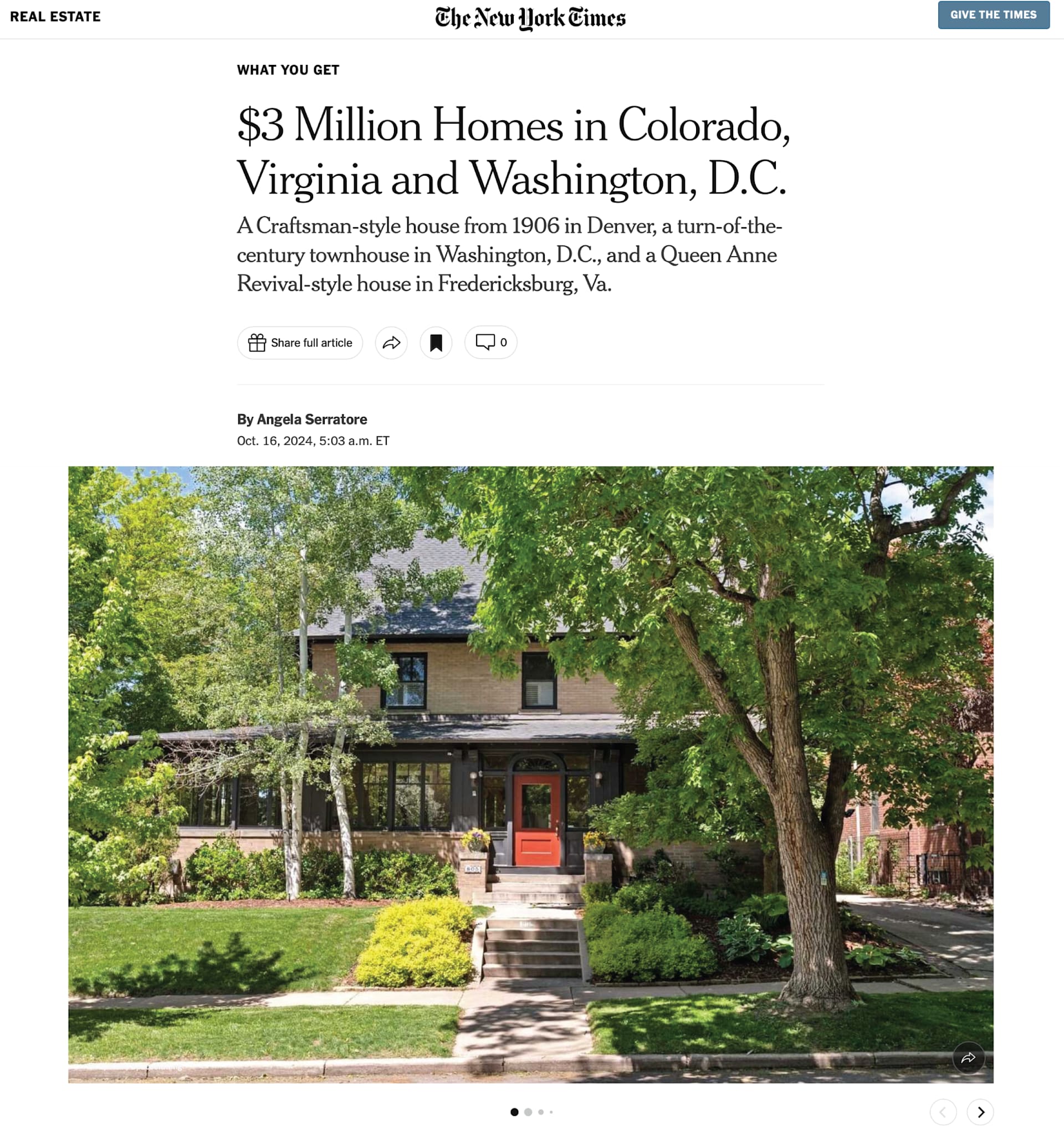 We love celebrating the beauty, character, and history of old homes, and we are incredibly grateful that the New York Times recognized the unique appeal of 805 Gaylord St. and chose to highlight it in its “What You Get” column this week. This home is full of character and history, is offered at a very attractive price per square foot for the neighborhood, and is within walking distance of Cheesman Park, Congress Park, the Denver Botanic Gardens, Cherry Creek, and so much more.