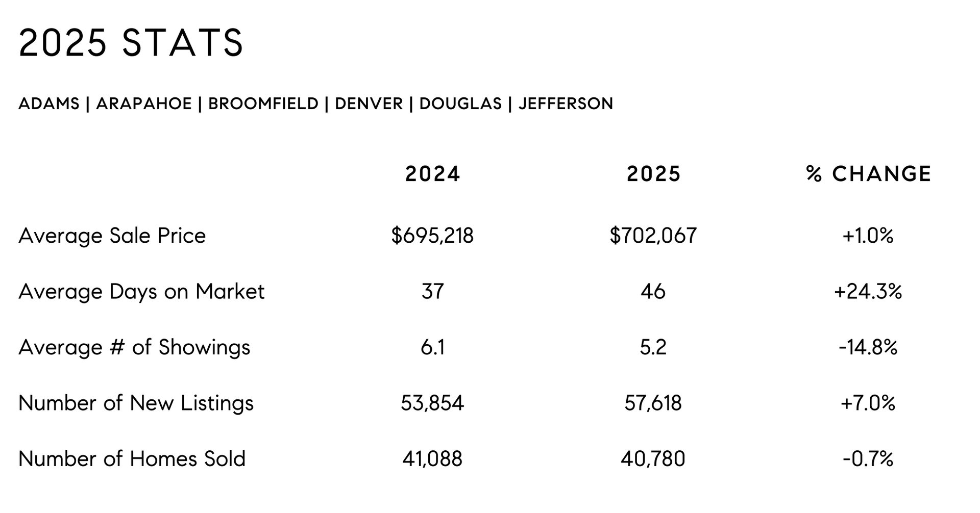 Source: REColorado and ShowingTime, residential, all property types, 2024 vs. 2025 (accessed 01/06/2026).