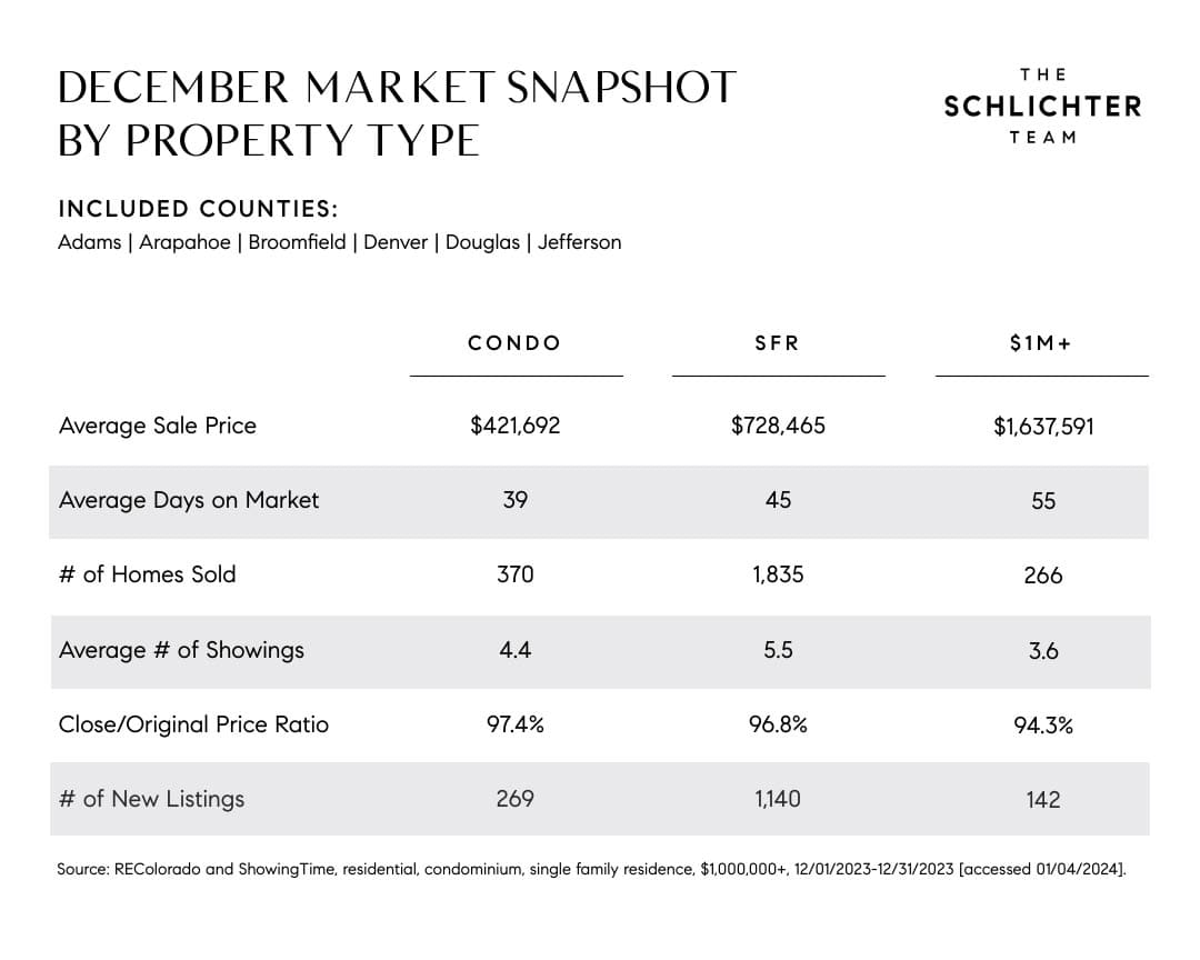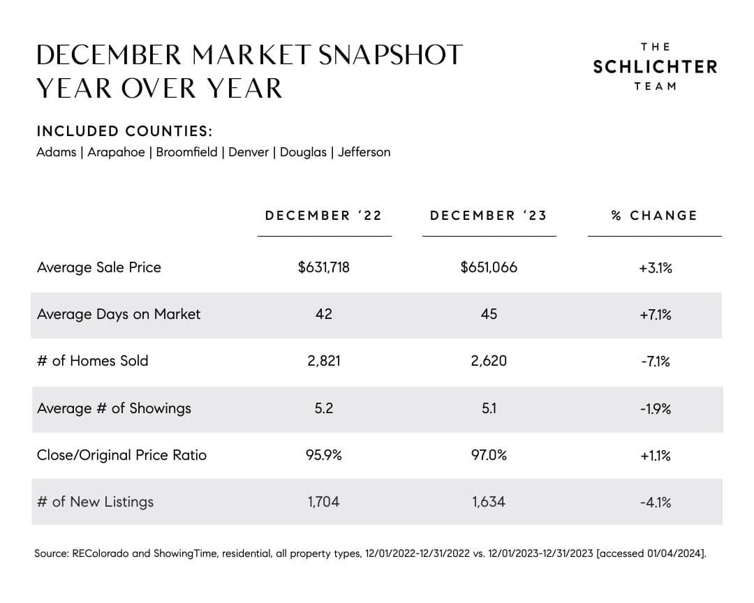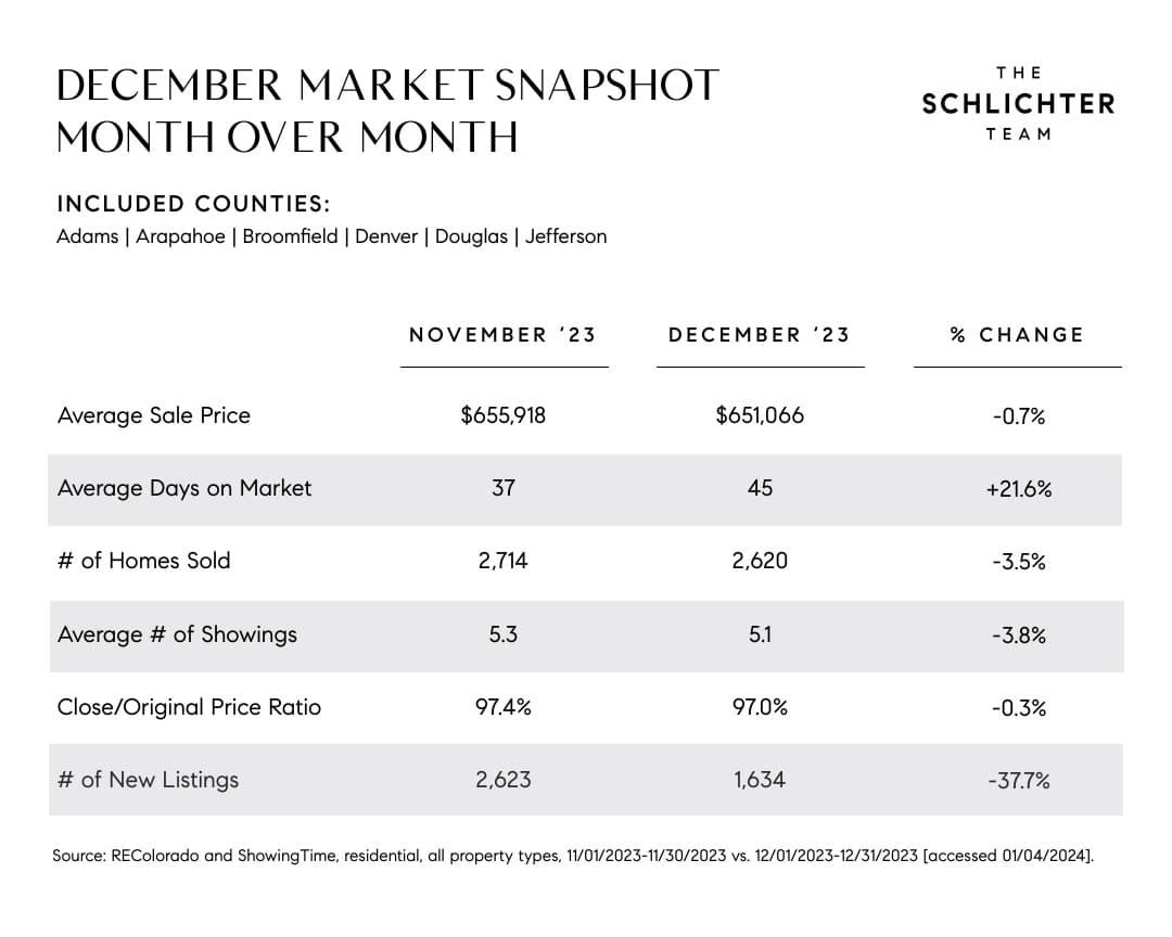 The Denver real estate market is typically slowest in December and starts to pick up notably between now and the late spring/early summer. With interest rates expected to drop throughout the year, it is possible that the spring frenzy may be extended this year--but a lot will depend on when/how quickly rates fall.