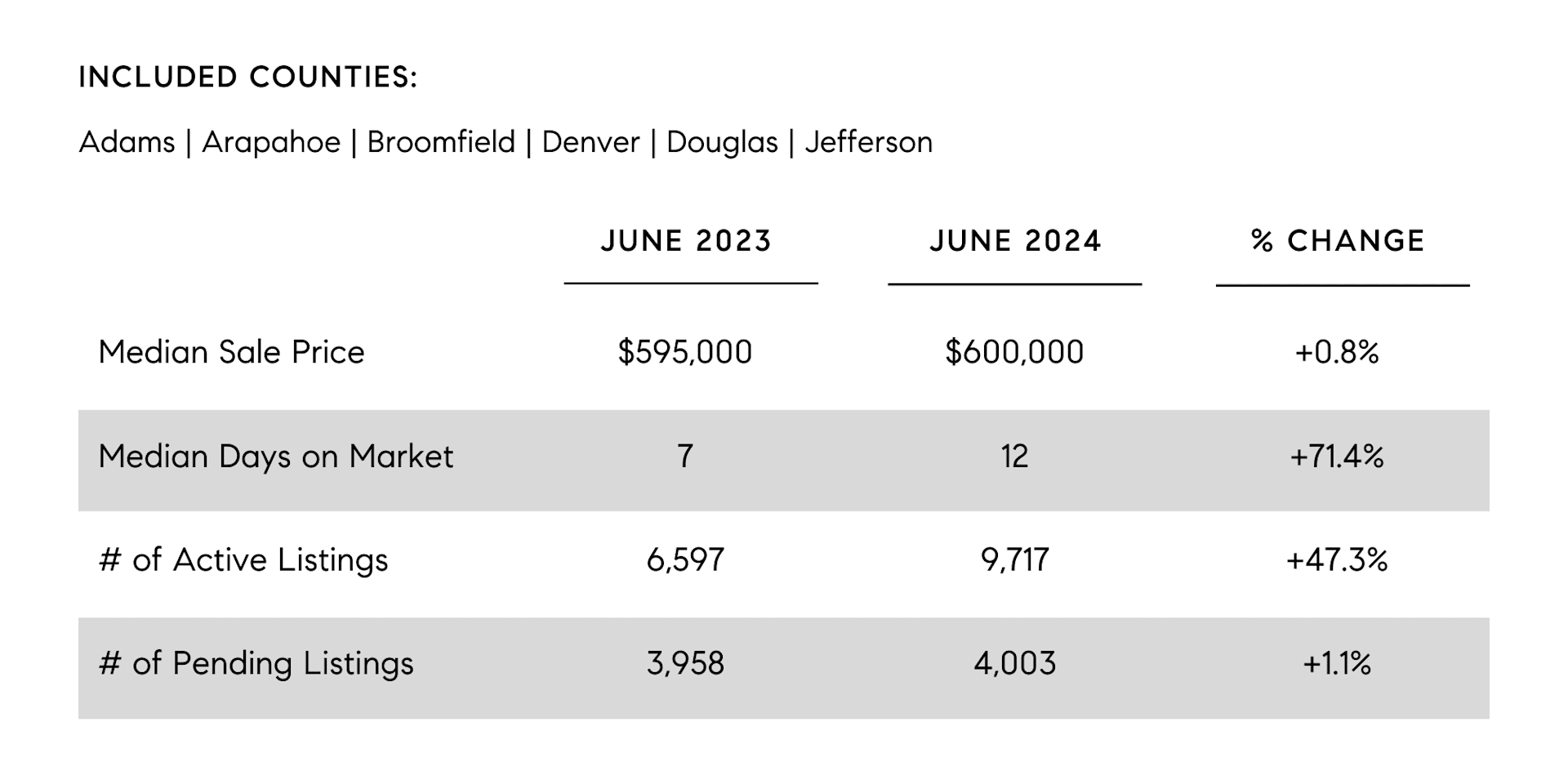 Source: REColorado and ShowingTime, residential, all property types, June 2023 vs. June 2024, May 2024 vs. June 2024 [accessed 07/03/2024].