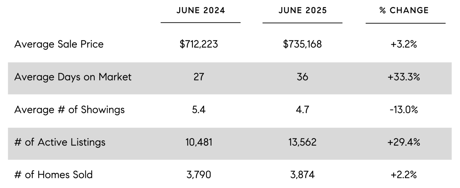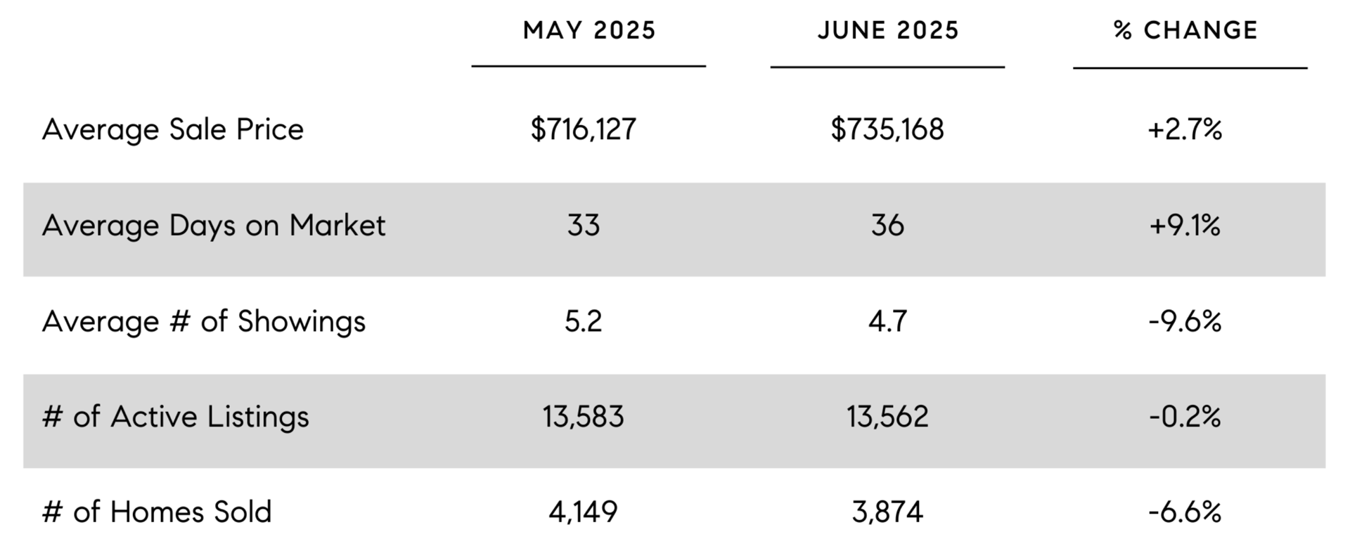 Source: REColorado and ShowingTime, residential, all property types, June 2024 vs. June 2025, May 2025 vs. June 2025 [accessed 07/03/2025].