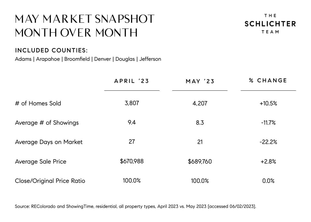 Month-over month (MOM) the real estate market got stronger with 10.5% more listings closed in May than in April, though year-over-year (YOY) sales volume was down 26.2%. Prices are up 2.8% MOM, but prices are down 2.4% YOY.