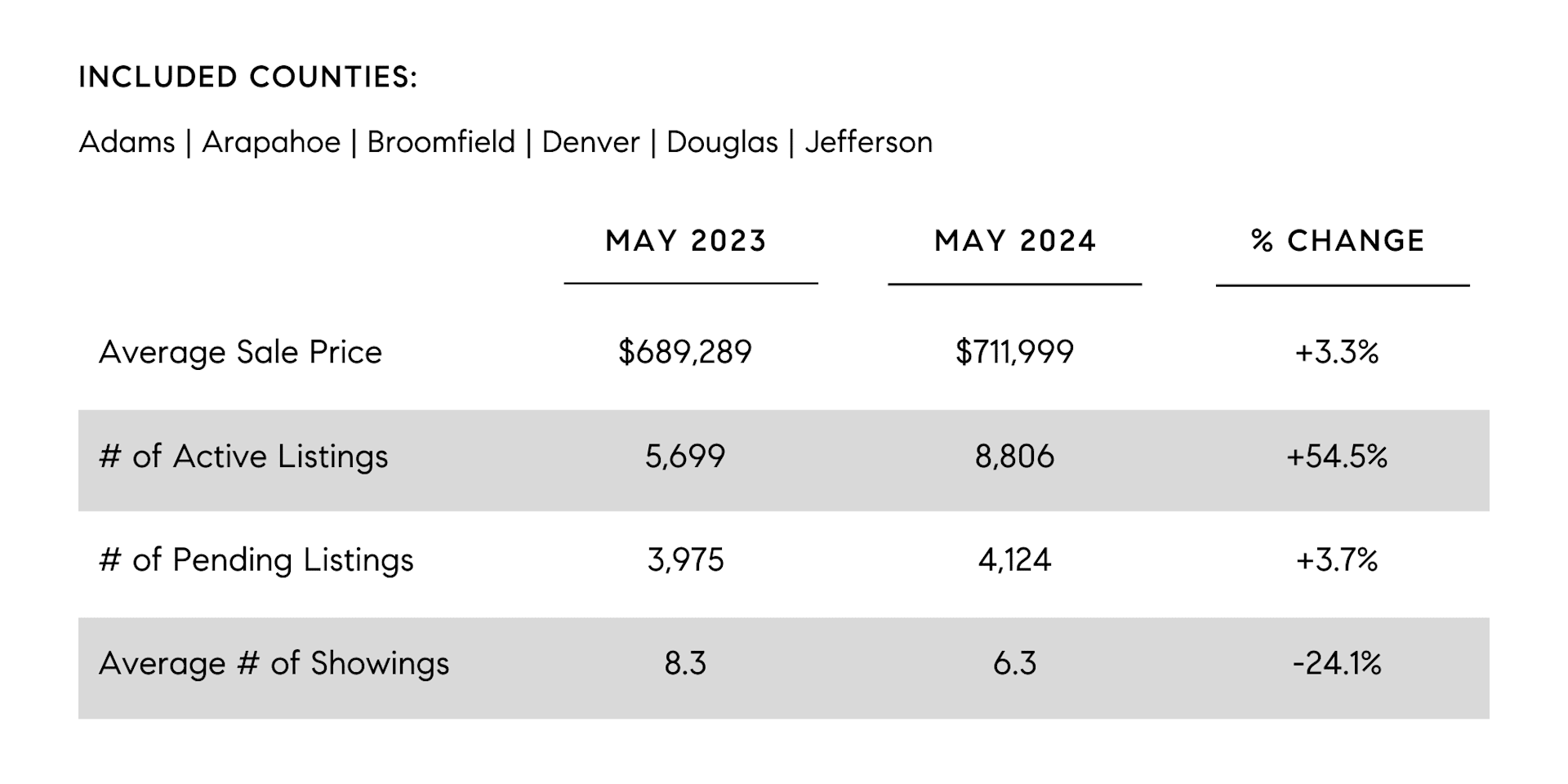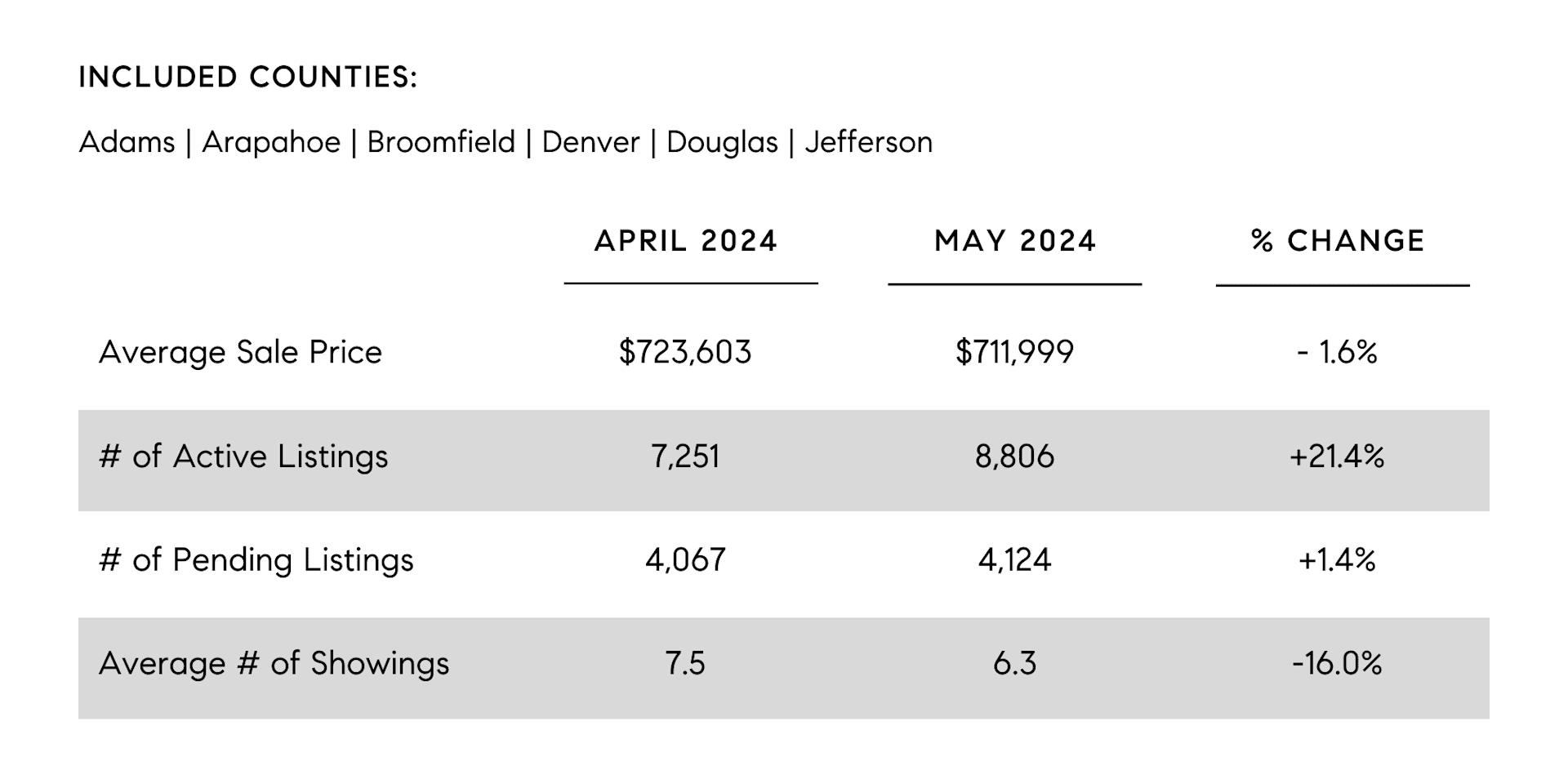 Source: REColorado and ShowingTime, residential, all property types, May 2023 vs. May 2024, April 2024 vs. May 2024 [accessed 06/04/2024].