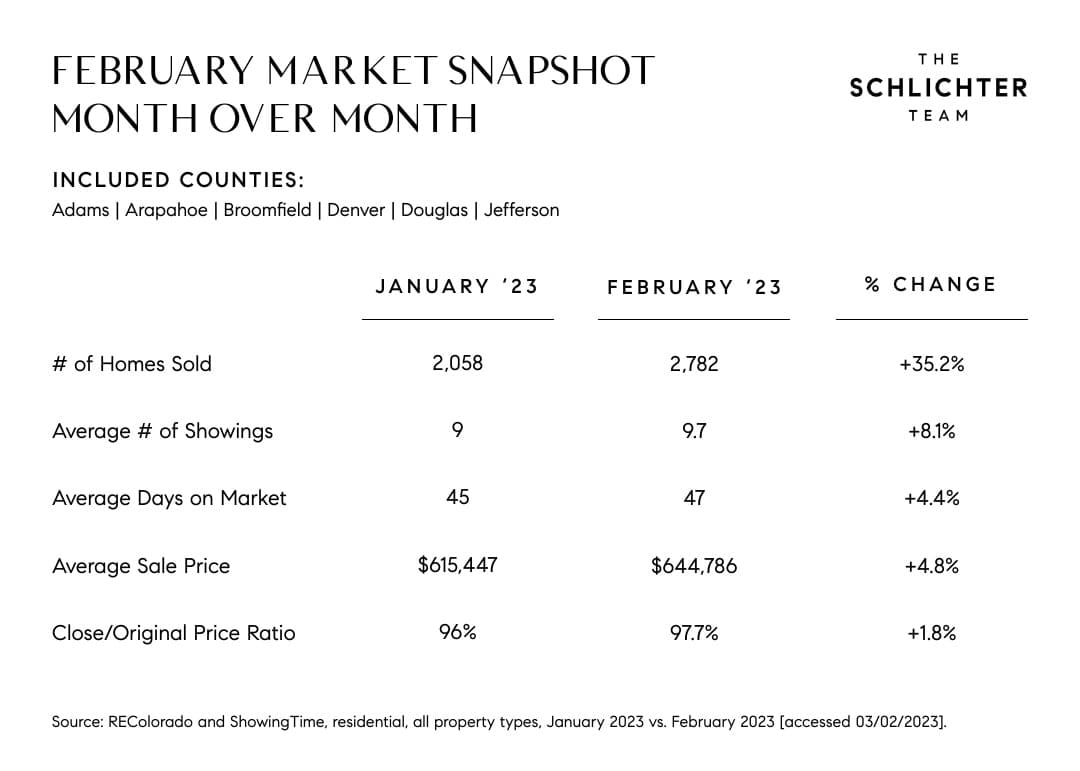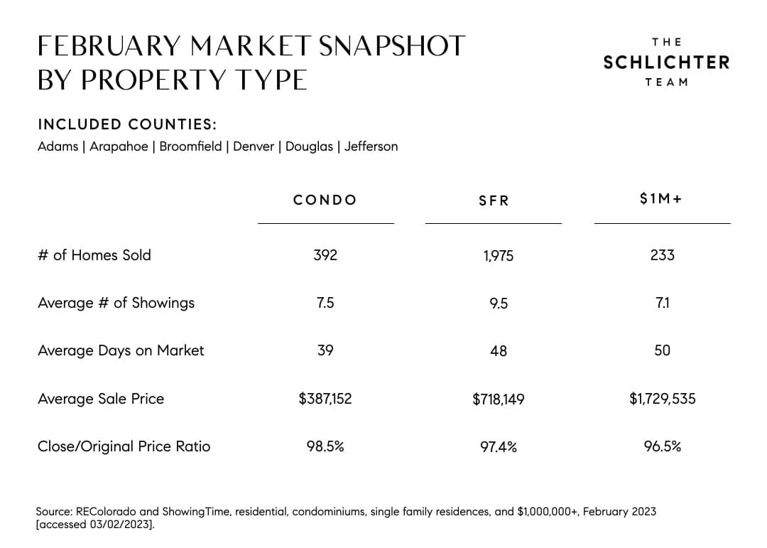 Interest rates will have a big impact on what happens for the remainder of 2023. Rates fell at the start of the new year, then over the last few weeks they have crept back up. Real estate is a long-term investment, and when rates fall in the future, buyers can refinance to save money on a monthly basis. Because Denver continues to be a growing metro area where new construction has not kept up with buyer demand and population growth, though, we don't expect a major decline in home values in the near term, medium term, or long term (though if the last three years have taught us anything it is that you never know what is around the corner!).