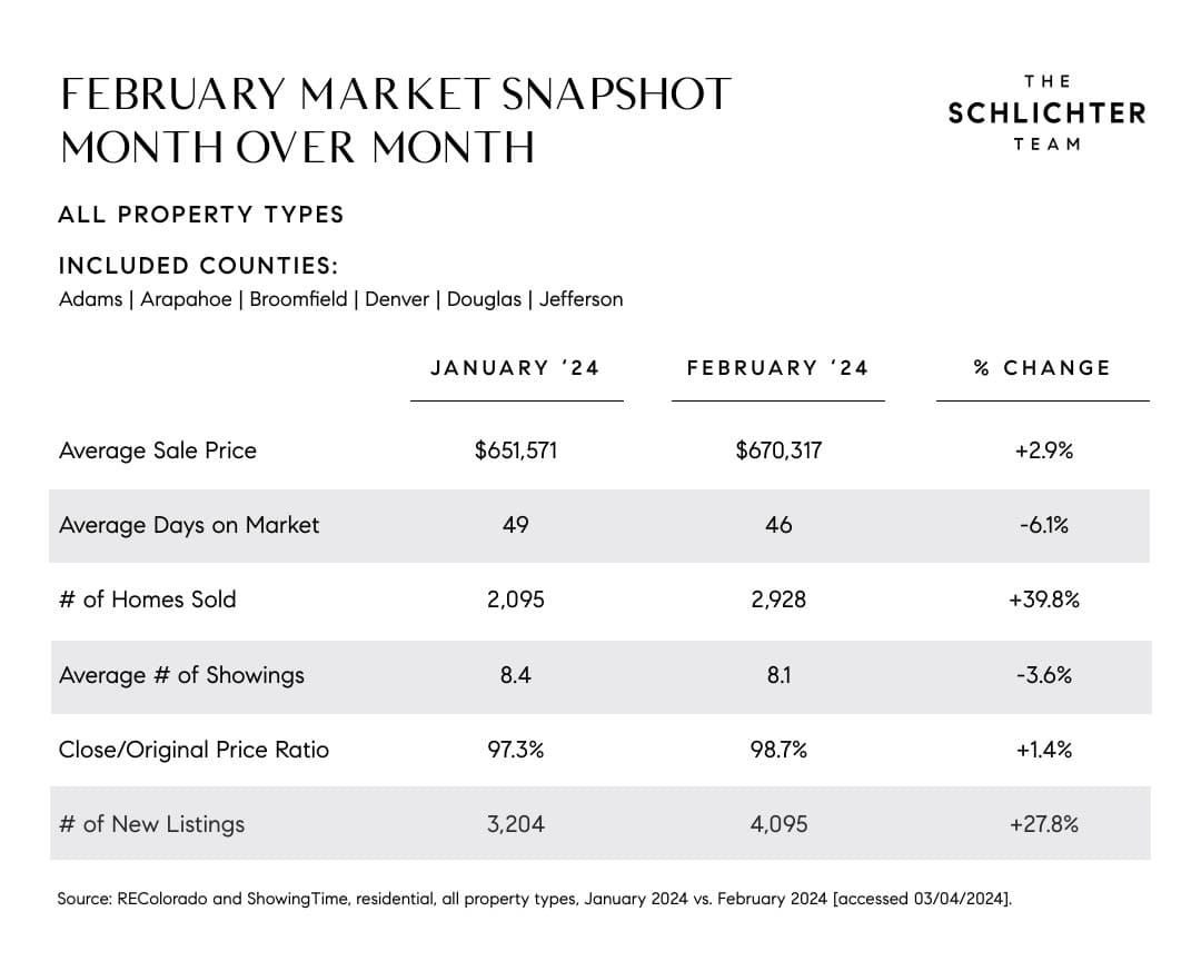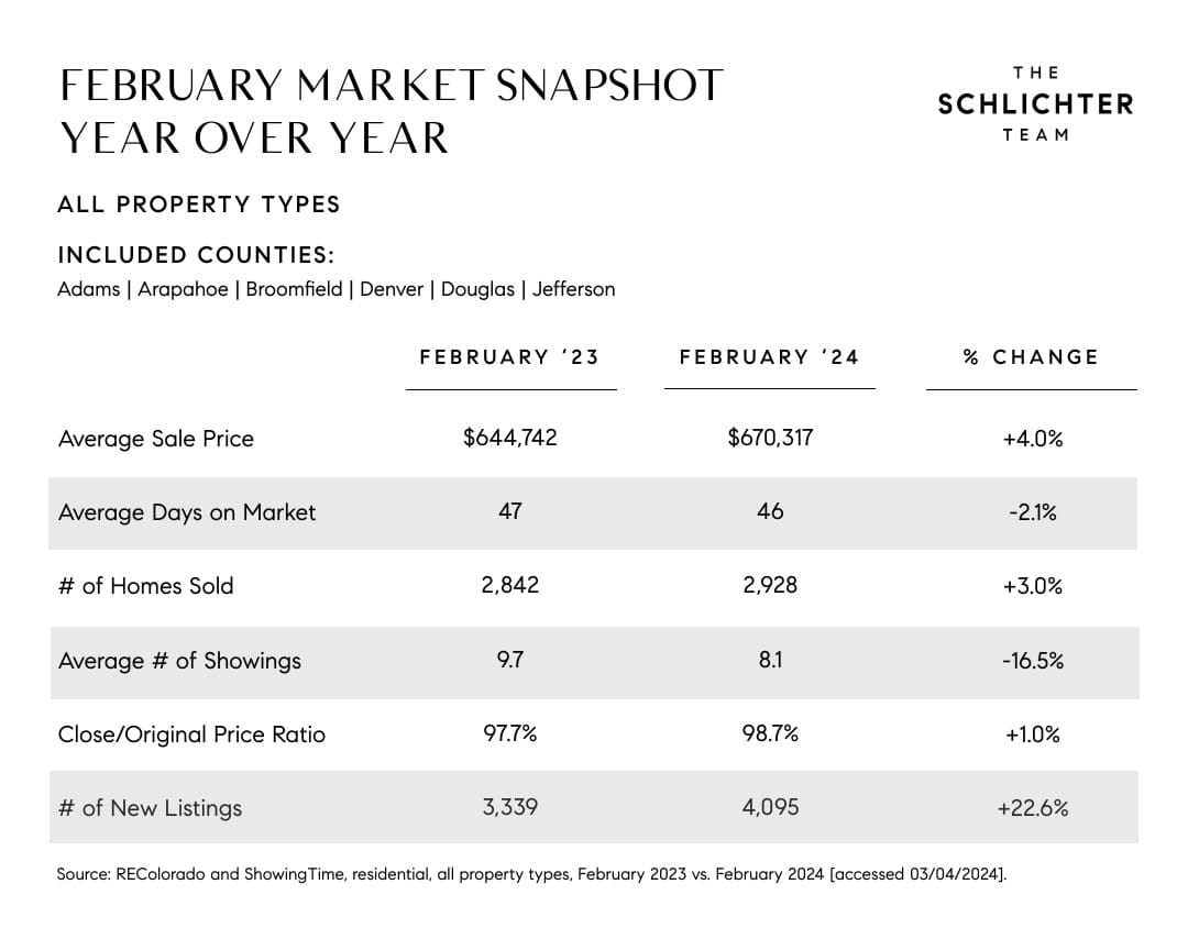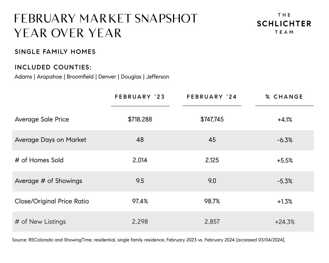 We hope that interest rates will fall as the year progresses, and when they do, buyer demand will increase accordingly. For more on this, see this recent Axios article in which David Schlichter discussed the implications of lower rates on the real estate market.