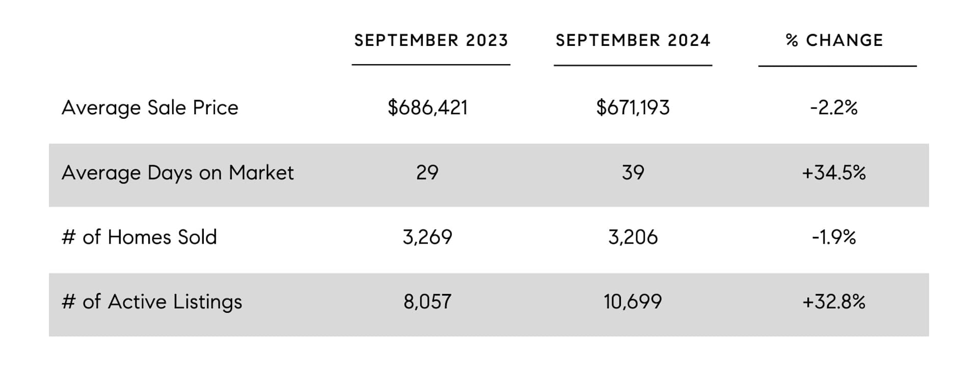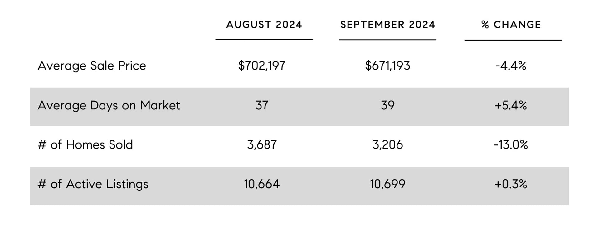 Source: REColorado and ShowingTime, residential, all property types, September 2023 vs. September 2024, August 2024 vs. September 2024 [accessed 10/04/2024].