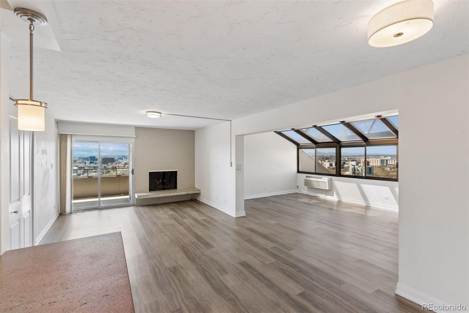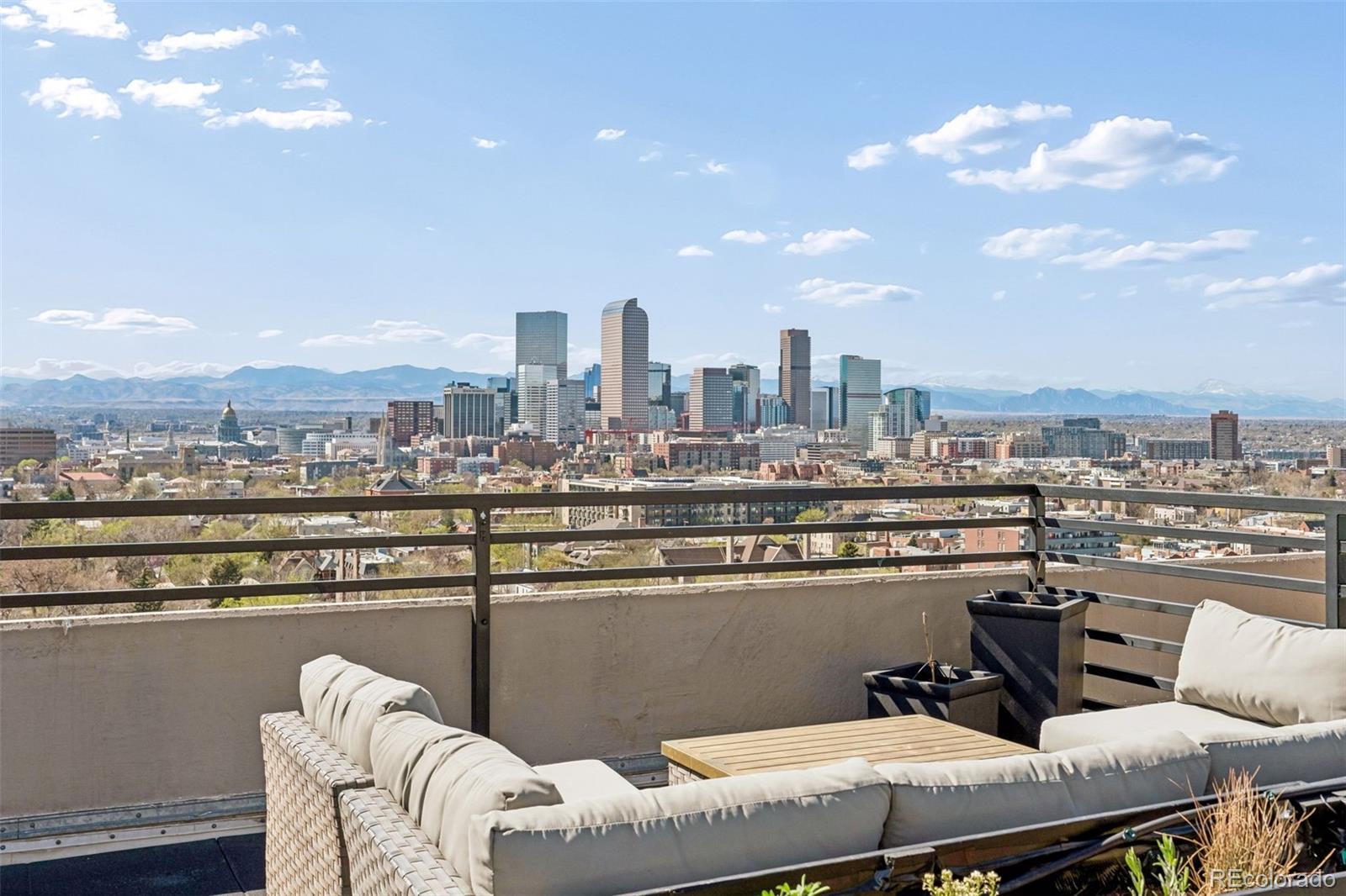 Views, convenience, and luxury abound from this penthouse Summer House condo! This 2-bedroom, 2-bathroom unit in an all amenity building directly across the street from Cheesman Park features an open floor plan, offers incredible views of the mountains, downtown Denver, and Cheesman Park, and boasts an unbeatable location with easy access to multiple parks, the Denver Botanic Gardens, downtown Denver, and Cherry Creek. The inviting main living area features a living room anchored by a functional wood-burning fireplace and sliding glass doors leading to the private balcony, a sun room with spectacular views and natural light from wall to roof windows, a great kitchen with concrete countertops, stainless steel appliances, and counter seating, and a dedicated dining area. The spacious primary suite includes double closets, a full en suite bathroom, and floor-to-ceiling windows with views of the mountains, downtown Denver, and Cheesman Park, and a second bedroom features the same incredible views, a reach-in closet complete with a combination washer/dryer (only a handful of units in the building have in-unit laundry), along with convenient access to the hallway bathroom. The private west-facing balcony is perfect for indoor-outdoor living and entertaining with vast million-dollar views and space for outdoor dining and lounging. The unit has plenty of storage space inside and its own dedicated storage unit (perfect for storing all of your gear), a reserved parking space in the garage, and a second unreserved space on the deck (first come first serve). The building amenities are phenomenal and include an indoor pool, hot tub, sauna, steam room, fitness center, a clubhouse, and one of the best rooftop decks in Denver with direct mountain views and gas grills-you'll never want to leave! Located within the desirable Dora Moore/Morey/East school boundaries. Quick closing and possession available! Buyer to verify all information. Schedule your private showing today!