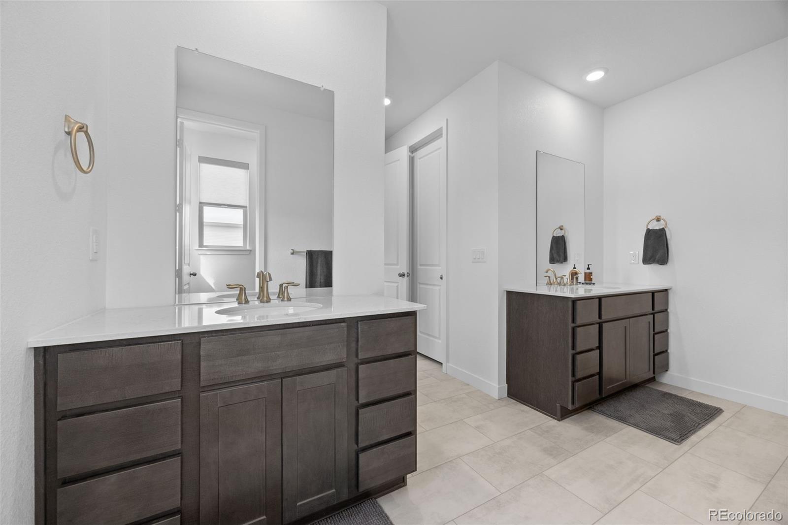 The primary suite features two walk in closets, en suite bathroom with dual vanities and a spa-style feel.