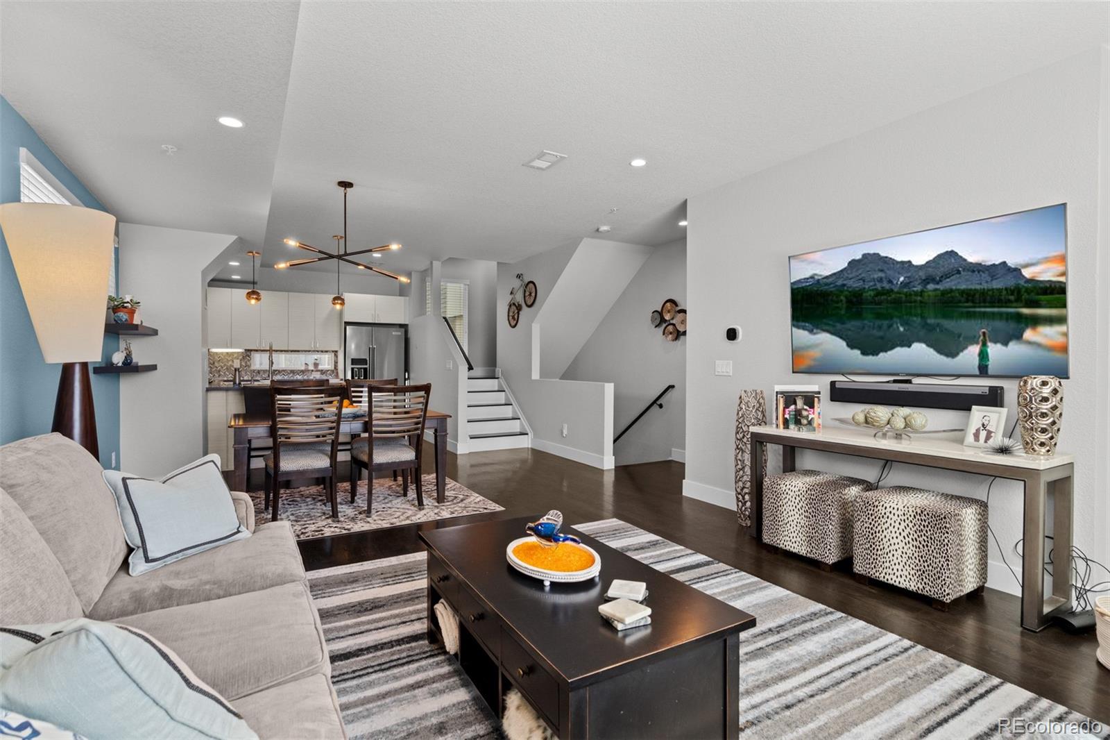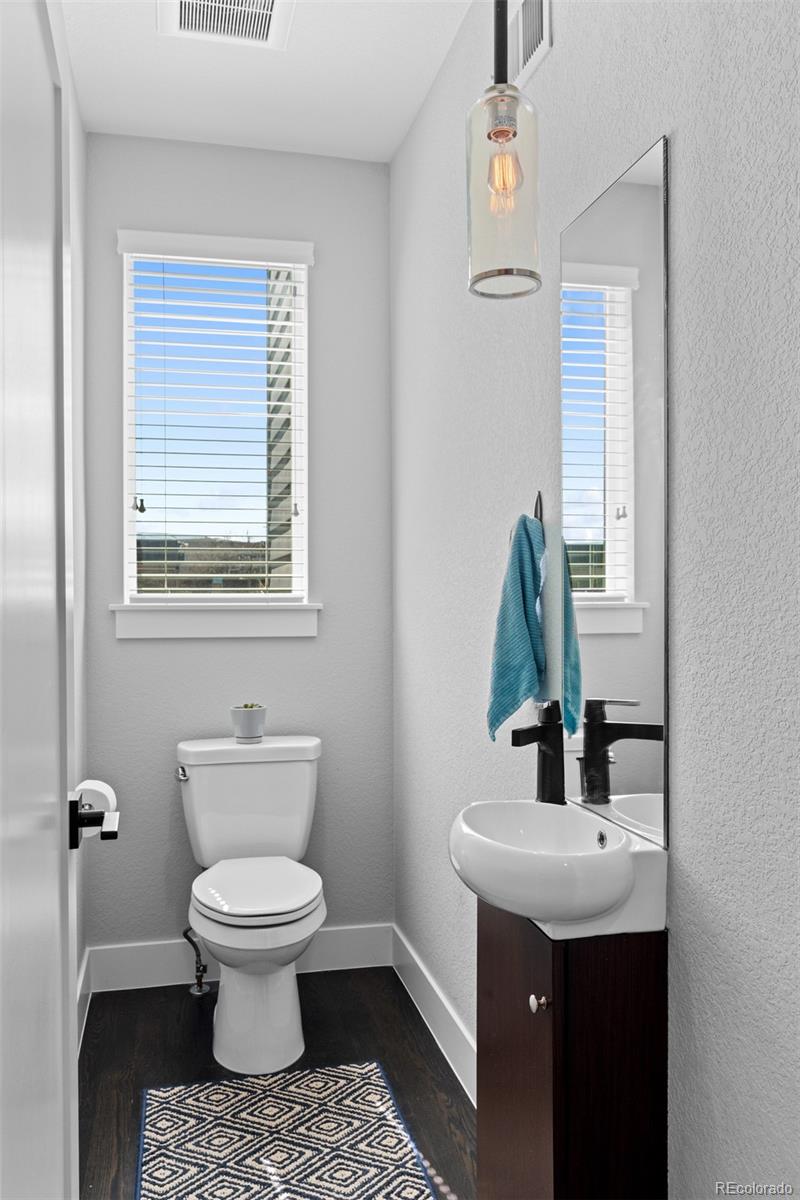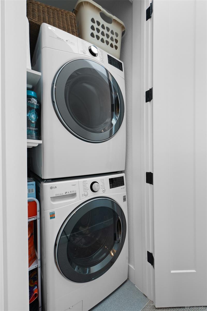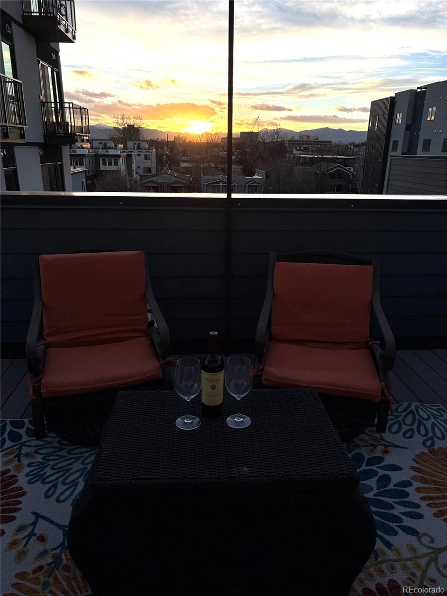 MUST SEE TO BELIEVE! From its rooftop deck with sweeping mountain and city views to its gorgeous interior, this Sloan's Lake townhome is absolutely exceptional and ready for its next owner! Step inside to a ground-level foyer with a powder room and direct access to the attached 2-car garage. Upstairs, the main living level is open and well-proportioned with high ceilings, hardwood floors, 8 ft. doors, and a large south-facing window that fills the space with natural light. The kitchen features quartz countertops, stainless steel appliances, soft-close drawers, and opens to the dining and living areas. A 2nd powder room is also located on this level. The upper level features 2 private bedroom suites: the primary bedroom includes a custom walk-in closet and en suite bathroom, and the 2nd bedroom also has its own full en suite bathroom. Laundry is conveniently located on the bedroom level (washer/dryer included). The rooftop deck is incredible--originally noted as having "the best views in the complex"--with mountain views to the west, uninterrupted views extending south across Denver, long sightlines, the ability to view sunrises and sunsets, and a sense of openness that is rare in this location. It features outdoor furniture (included), string lighting, a gas hookup for a grill, and is home to a high end custom Wind River hot tub (negotiable). Recent upgrades include a fully replaced central A/C system with a whole-house humidifier (2025), a smart thermostat, an Insinkerator instant hot faucet (2024), a MyQ garage door opener, Nest doorbell, WiFi extender, and a 240V dedicated circuit with 50A breaker for EV charging. Unlike most homes in the community, this unit also offers rare space for a 3rd guest vehicle to park in front of the garage. Excellent insulation and privacy from neighbors! Fantastic location between Sloan's Lake and Empower Field with easy access to downtown Denver, I-25, great restaurants/shops, and the light rail! Buyer to verify all information.