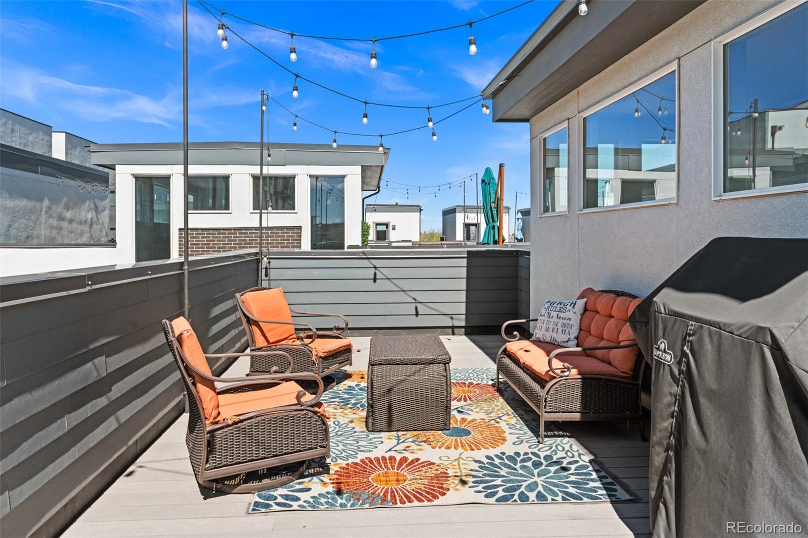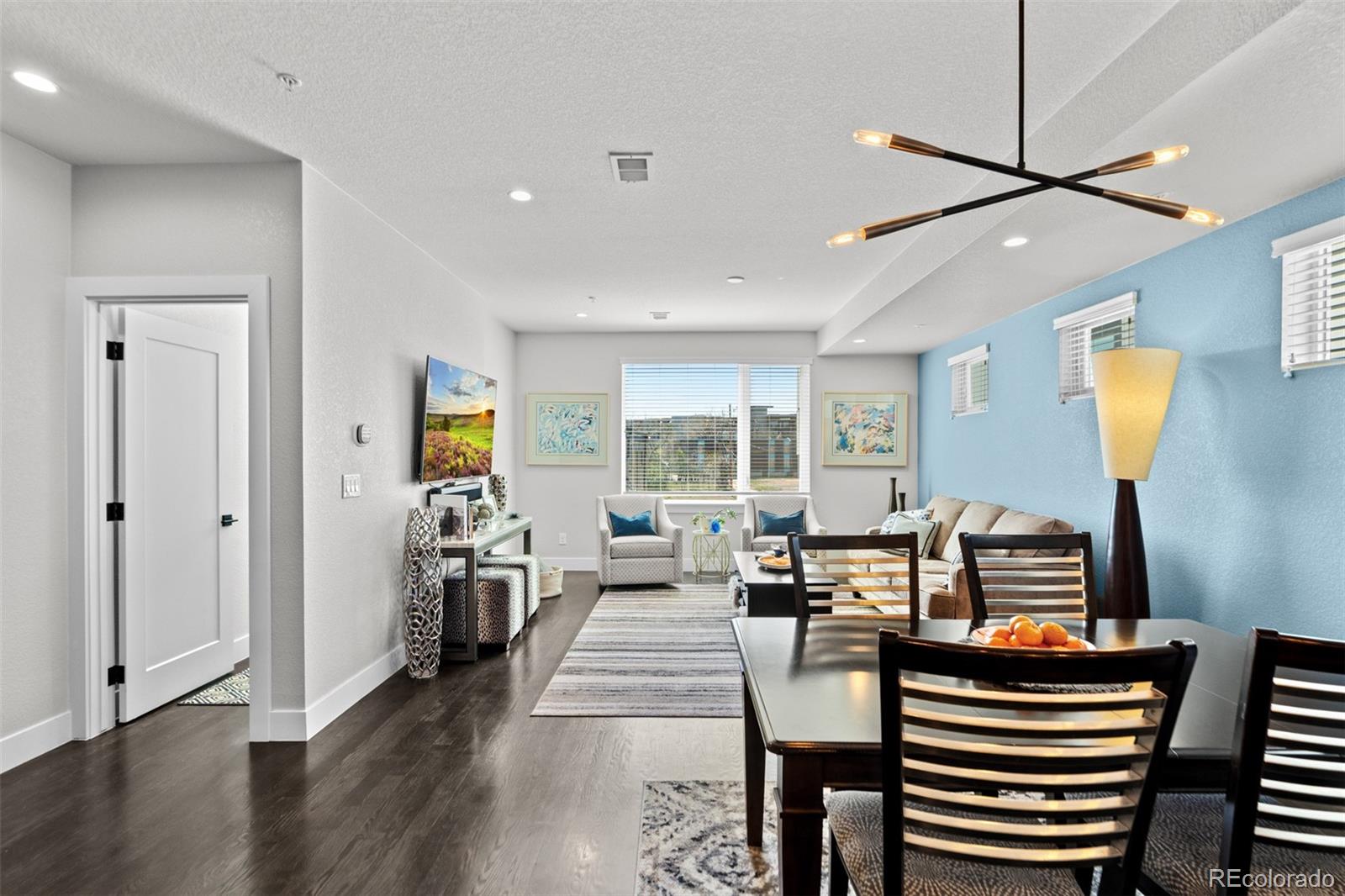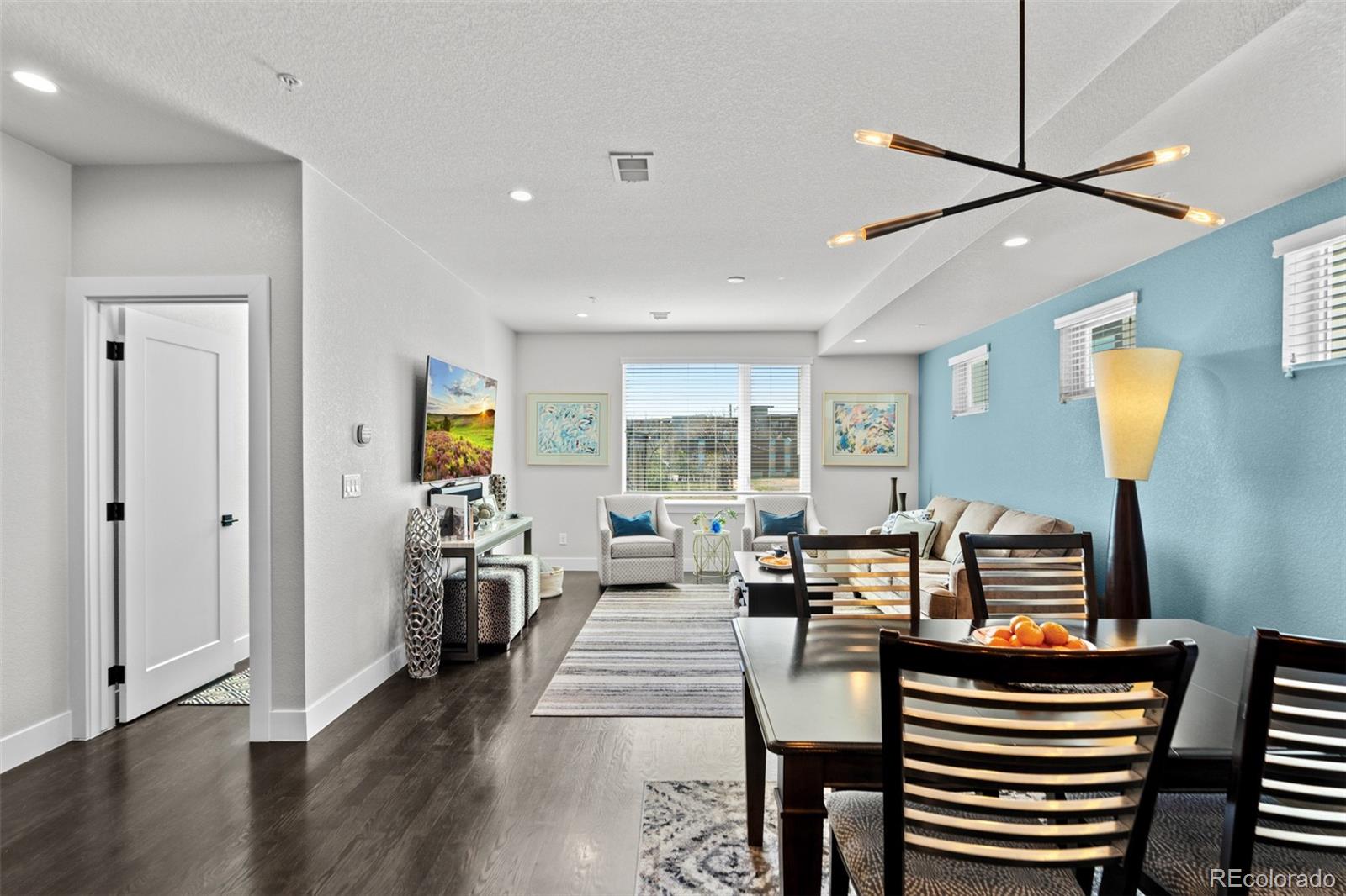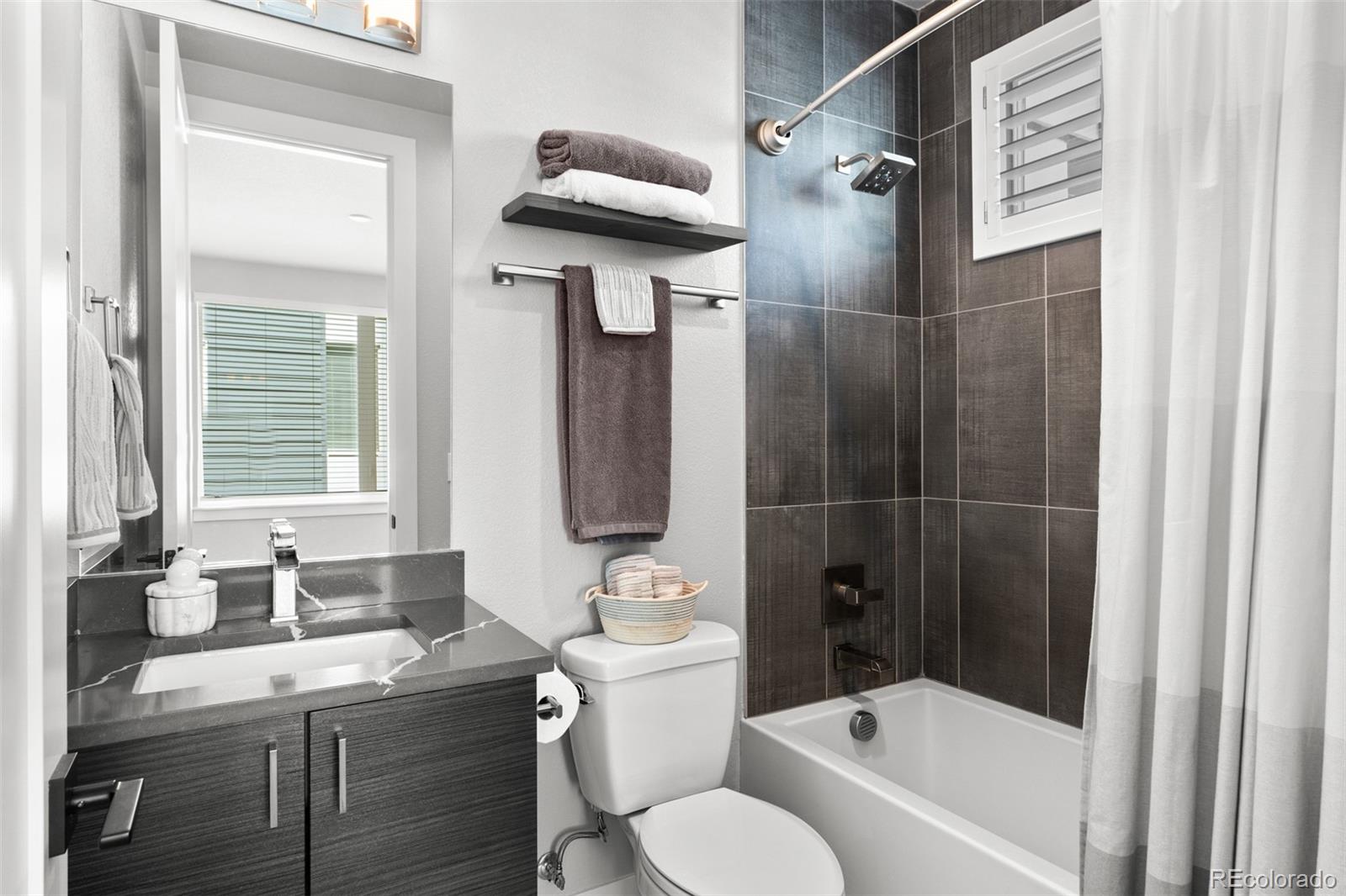 MUST SEE TO BELIEVE! From its rooftop deck with sweeping mountain and city views to its gorgeous interior, this Sloan's Lake townhome is absolutely exceptional and ready for its next owner! Step inside to a ground-level foyer with a powder room and direct access to the attached 2-car garage. Upstairs, the main living level is open and well-proportioned with high ceilings, hardwood floors, 8 ft. doors, and a large south-facing window that fills the space with natural light. The kitchen features quartz countertops, stainless steel appliances, soft-close drawers, and opens to the dining and living areas. A 2nd powder room is also located on this level. The upper level features 2 private bedroom suites: the primary bedroom includes a custom walk-in closet and en suite bathroom, and the 2nd bedroom also has its own full en suite bathroom. Laundry is conveniently located on the bedroom level (washer/dryer included). The rooftop deck is incredible--originally noted as having "the best views in the complex"--with mountain views to the west, uninterrupted views extending south across Denver, long sightlines, the ability to view sunrises and sunsets, and a sense of openness that is rare in this location. It features outdoor furniture (included), string lighting, a gas hookup for a grill, and is home to a high end custom Wind River hot tub (negotiable). Recent upgrades include a fully replaced central A/C system with a whole-house humidifier (2025), a smart thermostat, an Insinkerator instant hot faucet (2024), a MyQ garage door opener, Nest doorbell, WiFi extender, and a 240V dedicated circuit with 50A breaker for EV charging. Unlike most homes in the community, this unit also offers rare space for a 3rd guest vehicle to park in front of the garage. Excellent insulation and privacy from neighbors! Fantastic location between Sloan's Lake and Empower Field with easy access to downtown Denver, I-25, great restaurants/shops, and the light rail! Buyer to verify all information.