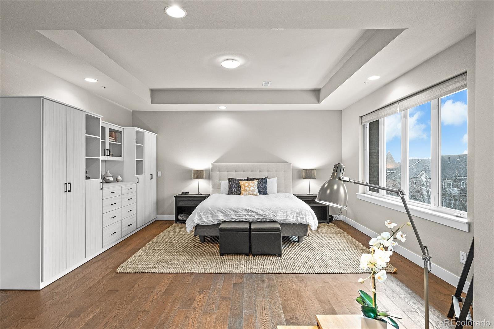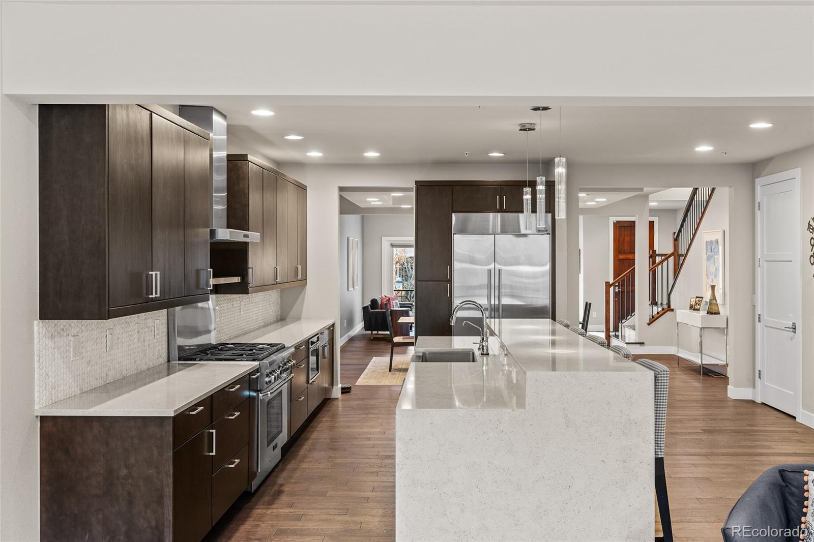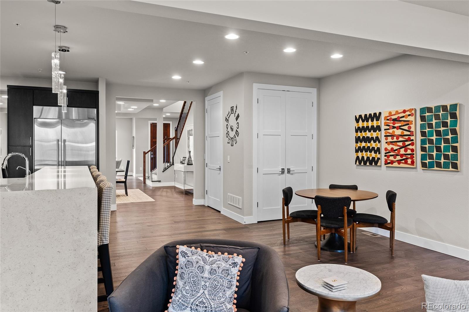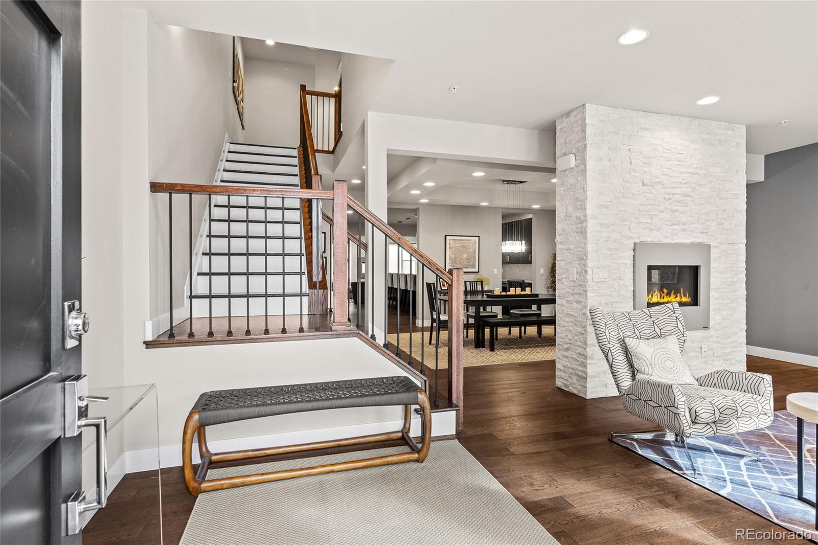 This absolutely immaculate luxury Cherry Creek townhome built in 2015 is sure to please the most discerning buyers. The main level features a west-facing living room and balcony, double-sided fireplace, dining room, stunning gourmet kitchen with high-end stainless steel appliances and a long waterfall quartz island, a spacious family room with an indoor/outdoor double-sided fireplace, a hidden wet bar, powder room, access to the private patio, and access to the 2-car garage. The expansive primary retreat on the upper level features a sitting area with a gas fireplace, large west-facing windows, custom built-in cabinetry, an exceptional 5-piece bathroom, and a fantastic walk-in closet. Two additional bedrooms, each with their own en-suite bathrooms, an oversized laundry room with a utility sink (washer/dryer included), and a linen closet complete the second level. The walk-out lower level offers a secondary living room with a wet bar and sliding glass doors that open to the lower level patio, a fourth conforming bedroom, a full bathroom, and additional storage/mechanicals. Vertically aligned closets on each level were designed for the ability to easily add an elevator. The home is on an exceptionally quiet block just minutes from the very best of Cherry Creek. All furniture is negotiable, and there is no HOA--only a party wall agreement. Schedule your showing today! Seller holds a Colorado real estate license. Buyer to verify all information. Showings begin March 20th, 2025.
