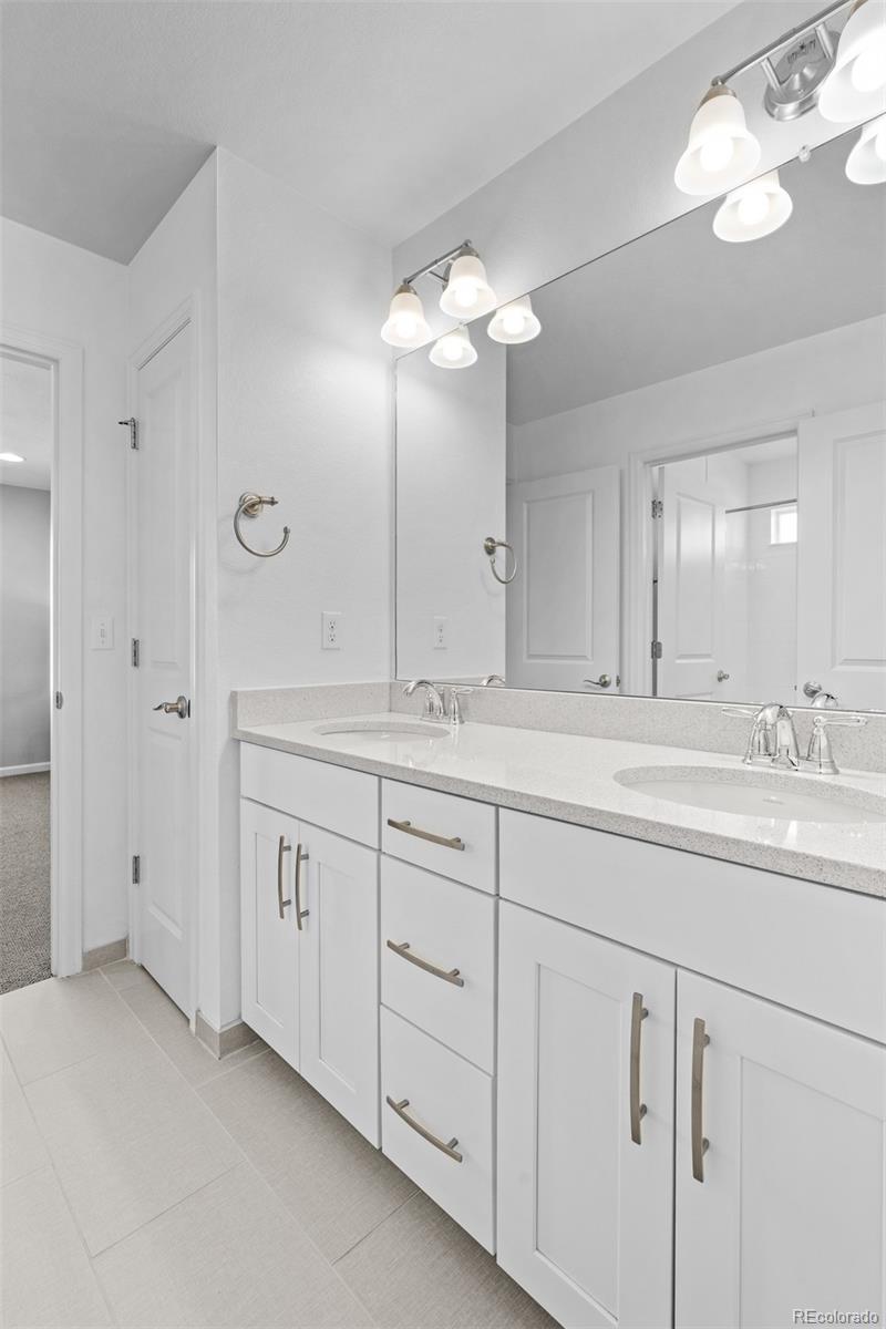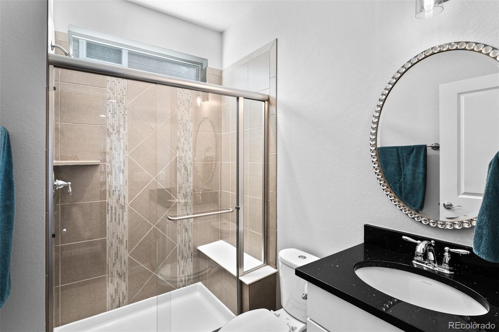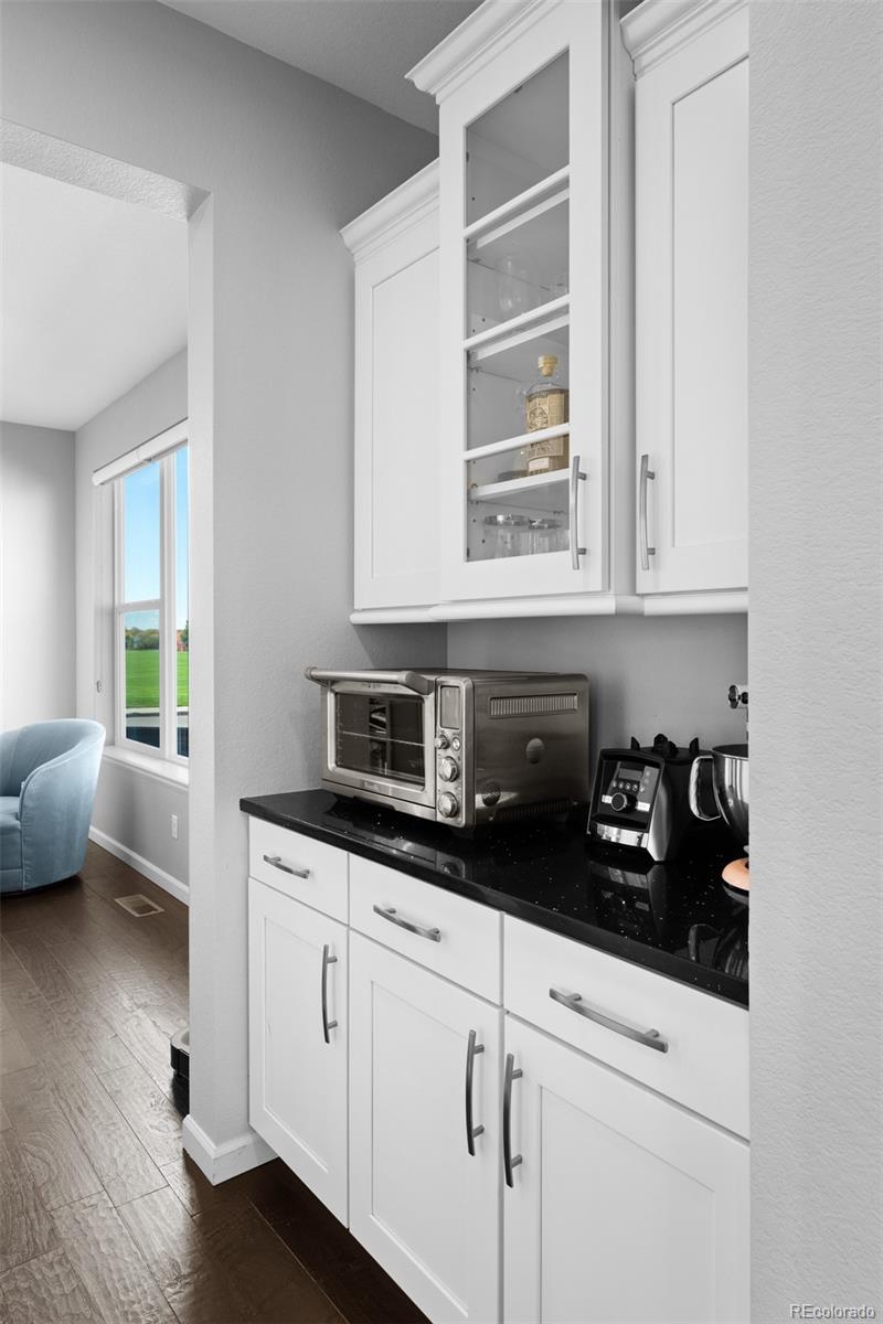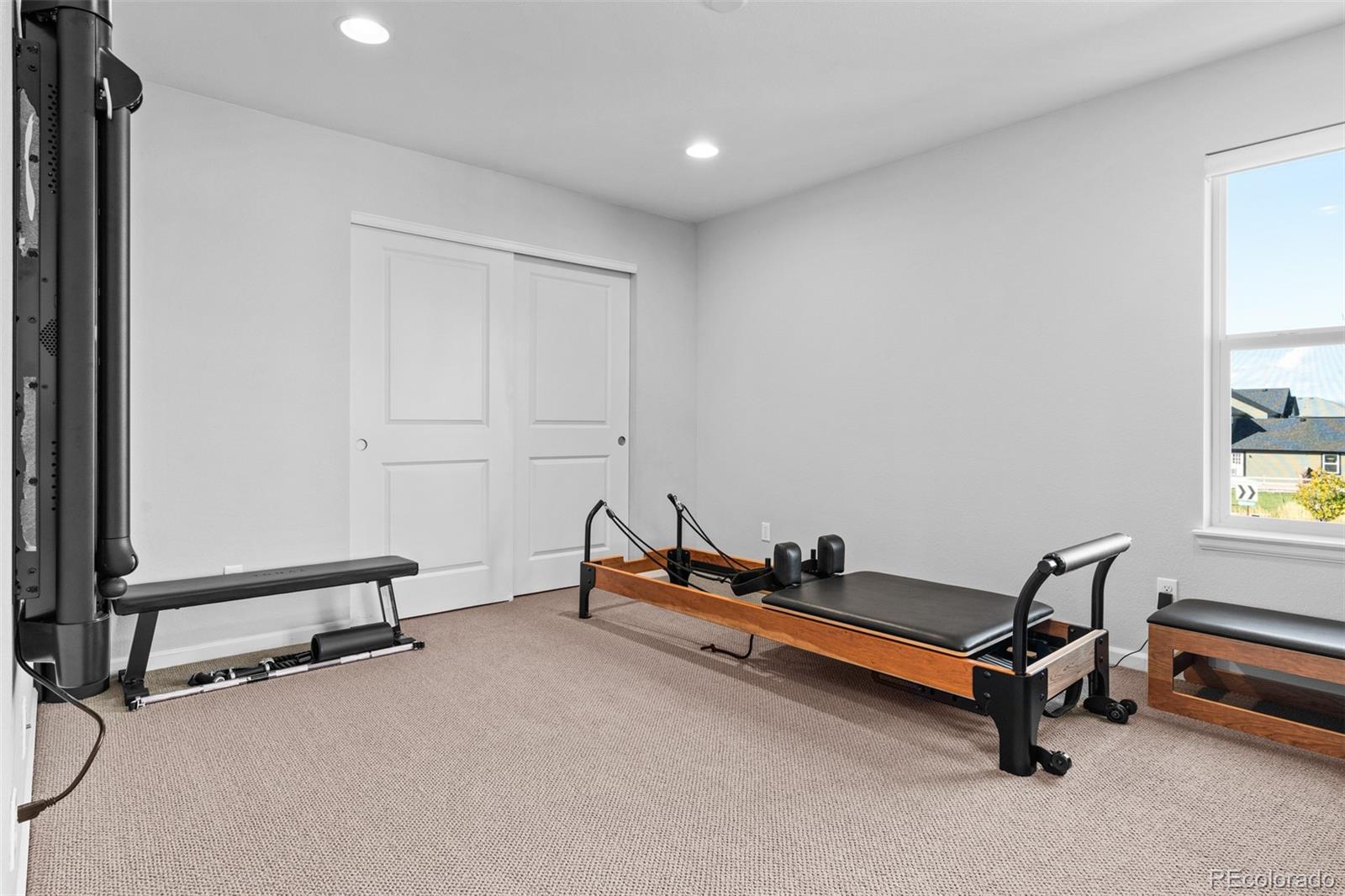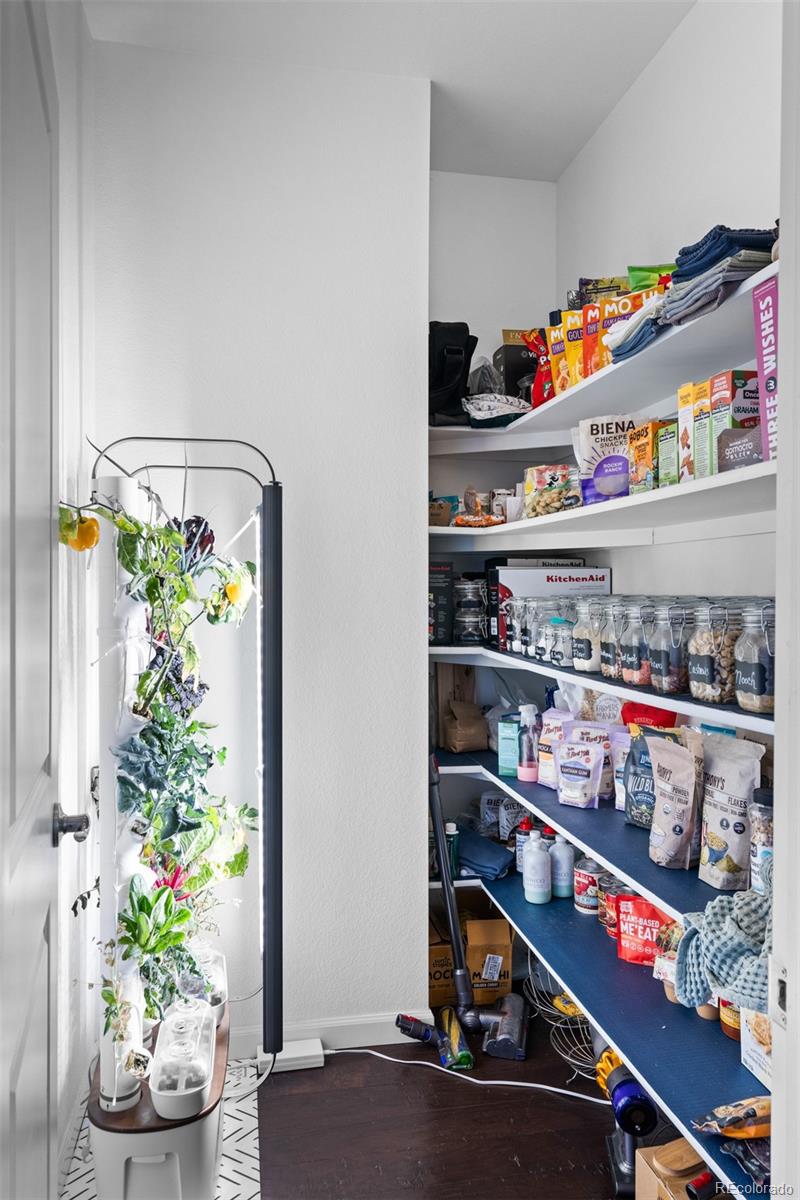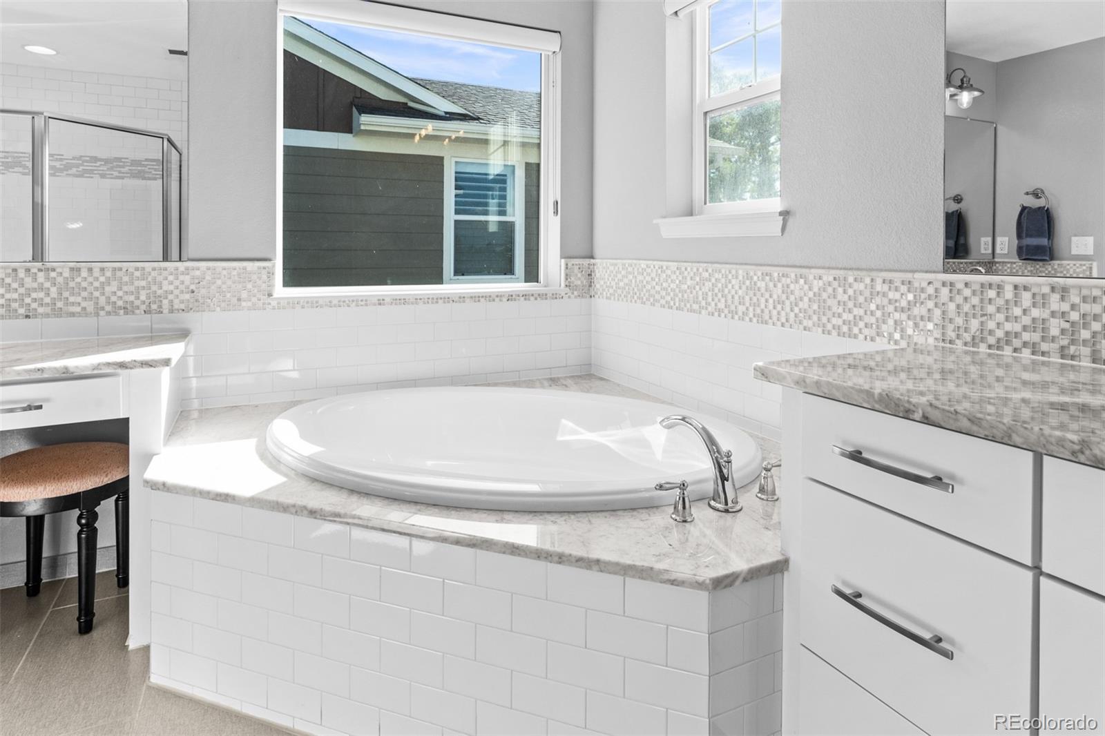 This is your chance to own a stunning move-in-ready home with exceptional views directly across the street from a gorgeous park! The main level of this breathtaking residence is defined by its two-story ceilings, spectacular curved stairwell, ample natural light, mountain views, and fabulous chef's kitchen. The kitchen provides a double oven, quartz countertops, a touch screen smart refrigerator, a large granite island with counter seating, ample prep space, a built-in microwave, a butler's pantry, and a large walk-in pantry. The formal dining room offers easy access to the kitchen, and the casual dining space adjacent to the kitchen is bright and airy-overlooking the backyard and providing easy access to the deck and living room. The living room is light and bright with two stories of windows and a fireplace to keep you warm on cold winter days. A spacious guest bedroom with custom closets, a bathroom with a large walk-in shower, and a beautiful office are all also conveniently located on the main level. The second level is home to the primary suite with its huge custom walk-in closet and 5-piece en suite bathroom. Two additional bedrooms, a shared full bathroom, a laundry room (washer/dryer included), and a bonus loft room (perfect as another living room or a flex space) complete the second level. A large unfinished basement offers endless potential for additional functional living space and/or storage. Two attached garages with a total of three garage bays ensure that all of your vehicles and equipment stay dry on wet days! Outside, the rear deck is the perfect place for meals and entertaining, and the corner lot is exceptional with a bonus grass space to the west and a beautiful park across the street to the south with its trails, playground, and more! This amazing home offers easy access to Denver International Airport, downtown Denver, Boulder, and so much more. Don't miss the opportunity to make this incredible home your own! Buyer to verify all information.