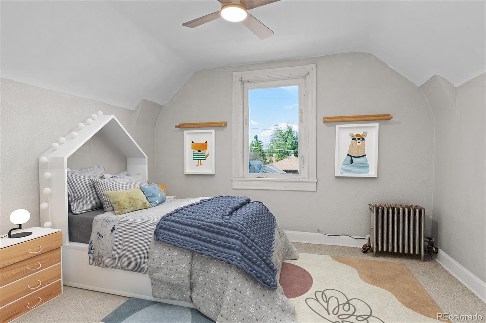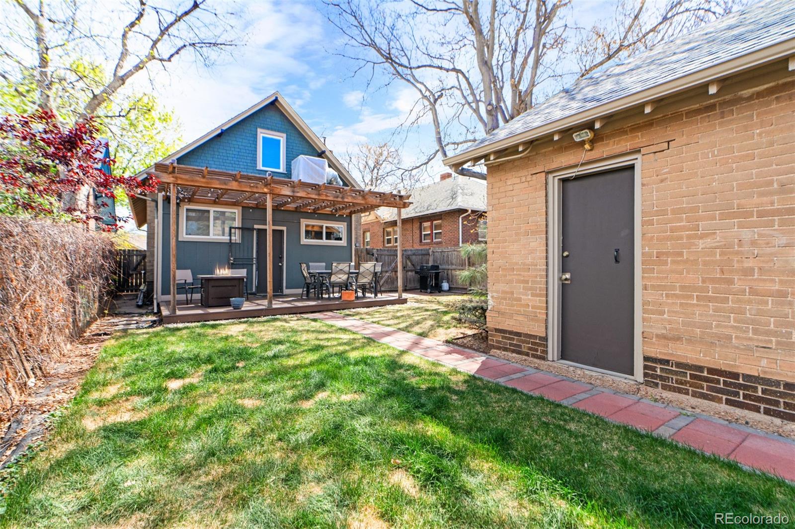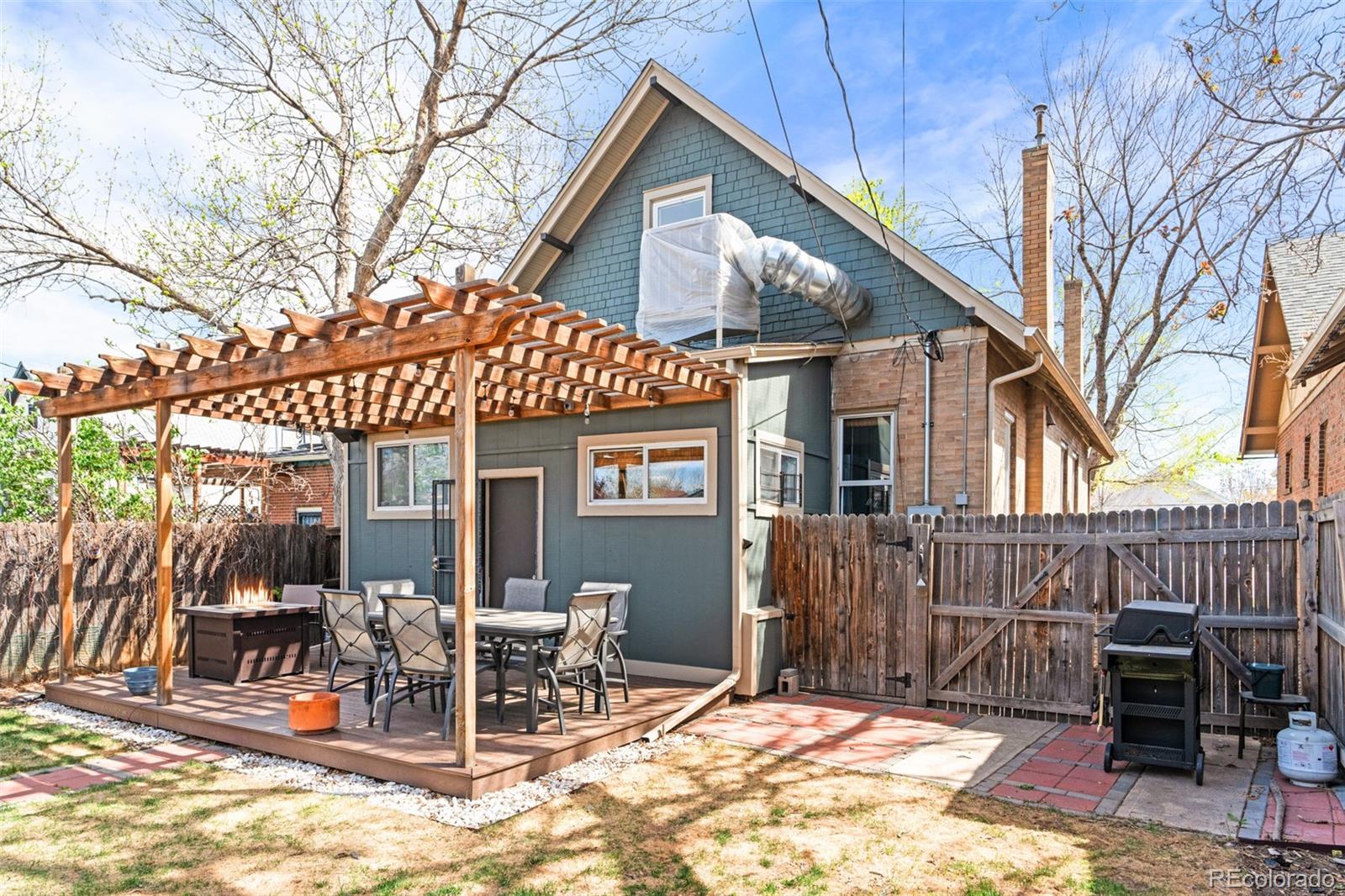 This classic Craftsman bungalow, located in one of Denver's oldest neighborhoods, Cole, is a perfect architectural example of the one-and-one-half-story bungalows the area is known for: from the low-pitched roofline with overhanging eaves to the exposed rafter ends and false half-timbering. Built in 1912 and framed by mature trees, this 4-bedroom, 4-bathroom home welcomes you in with its recently updated xeriscaped front yard and charming front porch. The main level features an entry foyer, a front-facing living room anchored by a wood-burning fireplace flanked by leadlights, a dining room, original millwork and hardwood floors, timeless single hung windows, and a large front window with a stained glass transom. The kitchen offers ample prep and storage space with its walk-in pantry, and the mud room features more shelving and a desk. Unlike similar homes in the area, the main level also includes a primary suite with a full bathroom and a walk-through closet, a second bedroom with a walk-in closet, and a 3/4 hallway bathroom. Upstairs, two additional bedrooms and a 3/4 bathroom provide flexibility, whether used as distinct bedrooms or combined to create a more private primary suite. The finished lock-off basement offers even more flexibility and income potential with its galley kitchenette (cooktop/refrigerator/sink), a family room, and a sleeping den with a custom reach-in closet. The basement laundry room can be locked off and accessed via a separate stairway through the kitchen. The back yard is perfect for outdoor entertaining and features a Trex deck, a pergola with string lighting, new sod, and access to the detached two-car garage. The location is phenomenal, with close proximity to City Park, great restaurants and coffee shops (Yacht Club, Brasserie Brixton, Nola Voodoo Tavern, and Rivers and Roads Coffee), Russell Square Park, York Street Yards, and RiNo. Easy access to downtown Denver, the light rail, I-25, and I-70. Buyer to verify all information.