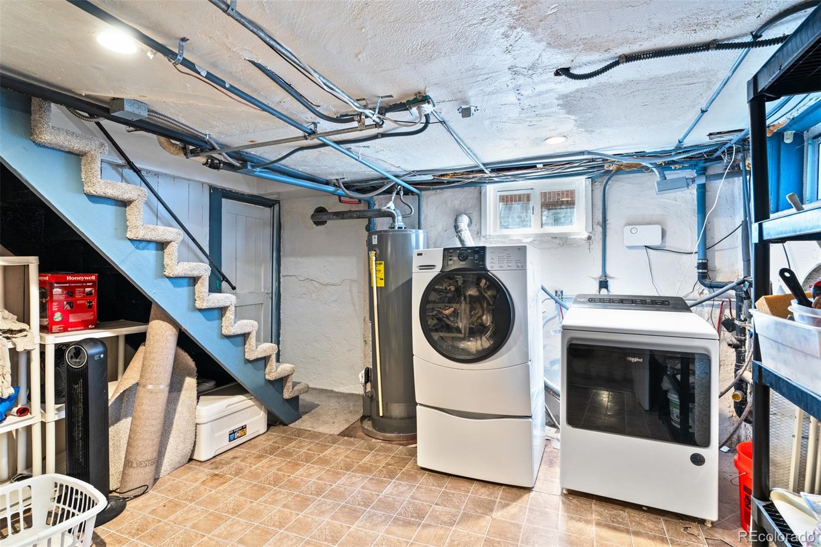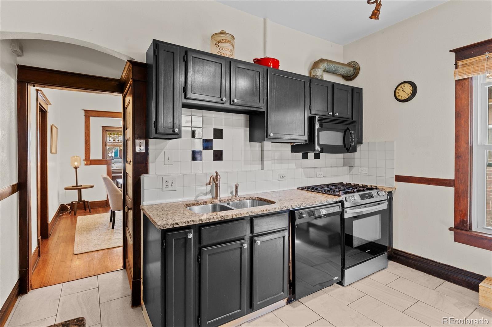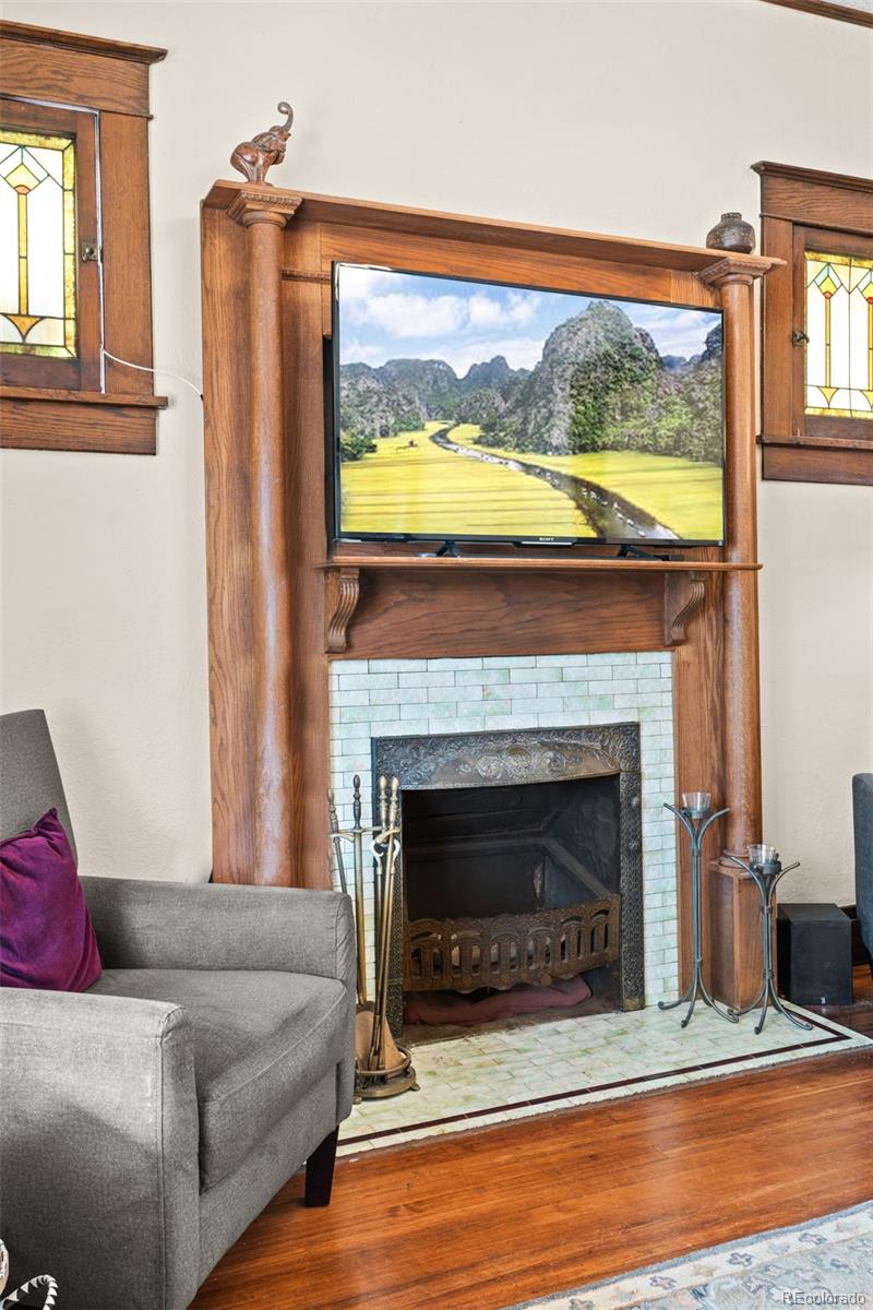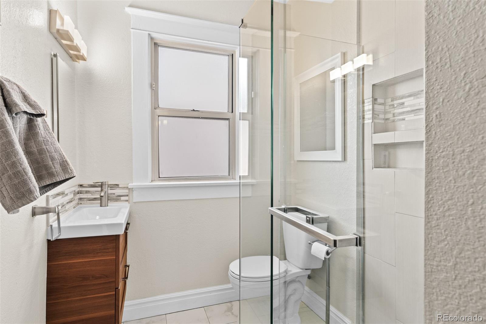 This classic Craftsman bungalow, located in one of Denver's oldest neighborhoods, Cole, is a perfect architectural example of the one-and-one-half-story bungalows the area is known for: from the low-pitched roofline with overhanging eaves to the exposed rafter ends and false half-timbering. Built in 1912 and framed by mature trees, this 4-bedroom, 4-bathroom home welcomes you in with its recently updated xeriscaped front yard and charming front porch. The main level features an entry foyer, a front-facing living room anchored by a wood-burning fireplace flanked by leadlights, a dining room, original millwork and hardwood floors, timeless single hung windows, and a large front window with a stained glass transom. The kitchen offers ample prep and storage space with its walk-in pantry, and the mud room features more shelving and a desk. Unlike similar homes in the area, the main level also includes a primary suite with a full bathroom and a walk-through closet, a second bedroom with a walk-in closet, and a 3/4 hallway bathroom. Upstairs, two additional bedrooms and a 3/4 bathroom provide flexibility, whether used as distinct bedrooms or combined to create a more private primary suite. The finished lock-off basement offers even more flexibility and income potential with its galley kitchenette (cooktop/refrigerator/sink), a family room, and a sleeping den with a custom reach-in closet. The basement laundry room can be locked off and accessed via a separate stairway through the kitchen. The back yard is perfect for outdoor entertaining and features a Trex deck, a pergola with string lighting, new sod, and access to the detached two-car garage. The location is phenomenal, with close proximity to City Park, great restaurants and coffee shops (Yacht Club, Brasserie Brixton, Nola Voodoo Tavern, and Rivers and Roads Coffee), Russell Square Park, York Street Yards, and RiNo. Easy access to downtown Denver, the light rail, I-25, and I-70. Buyer to verify all information.