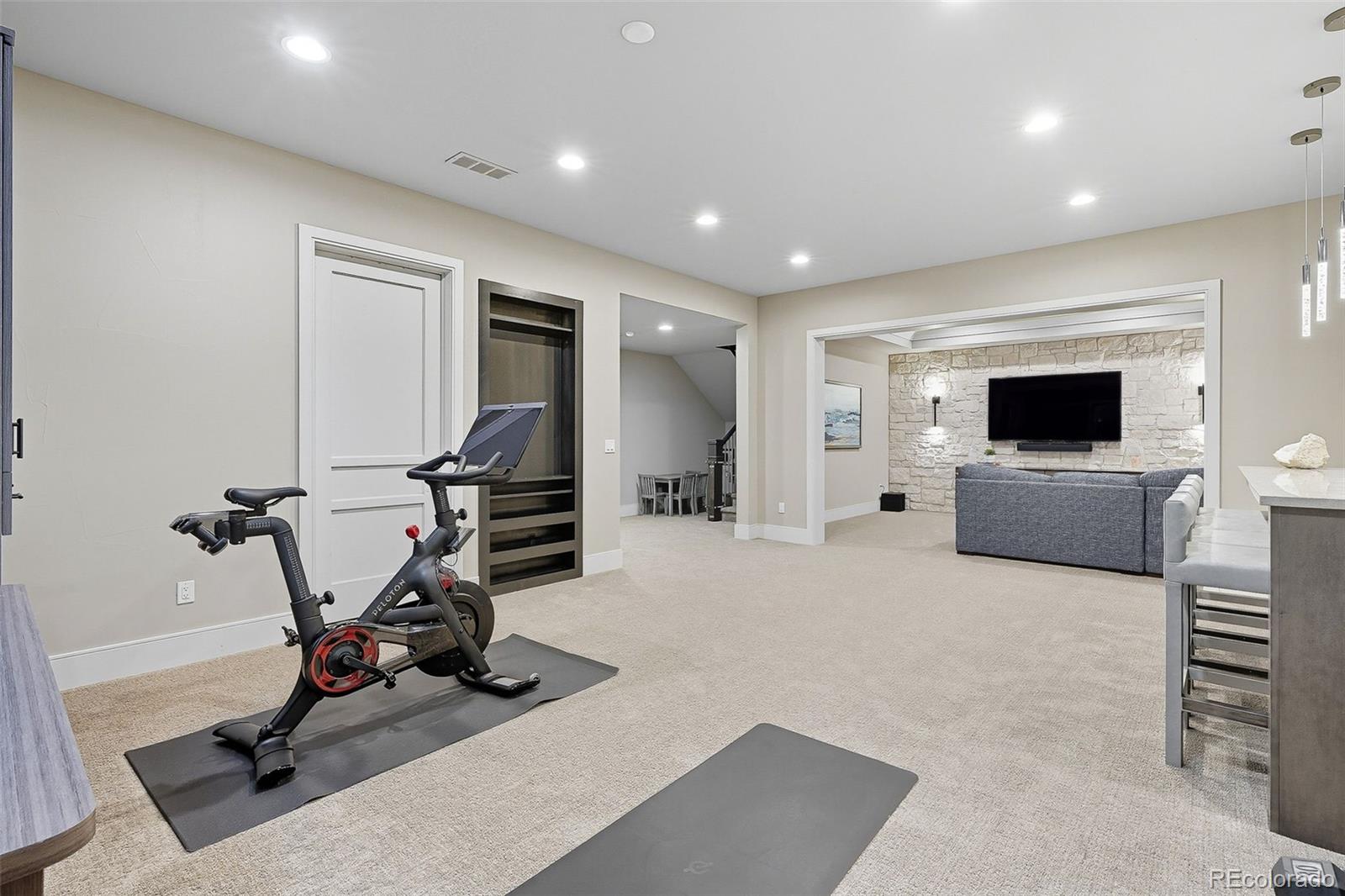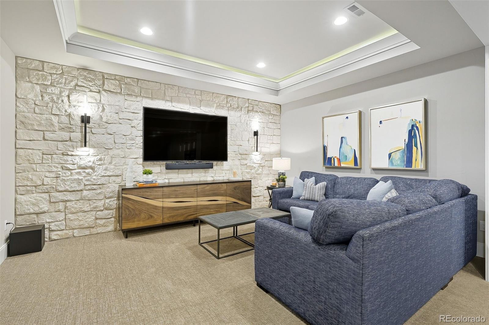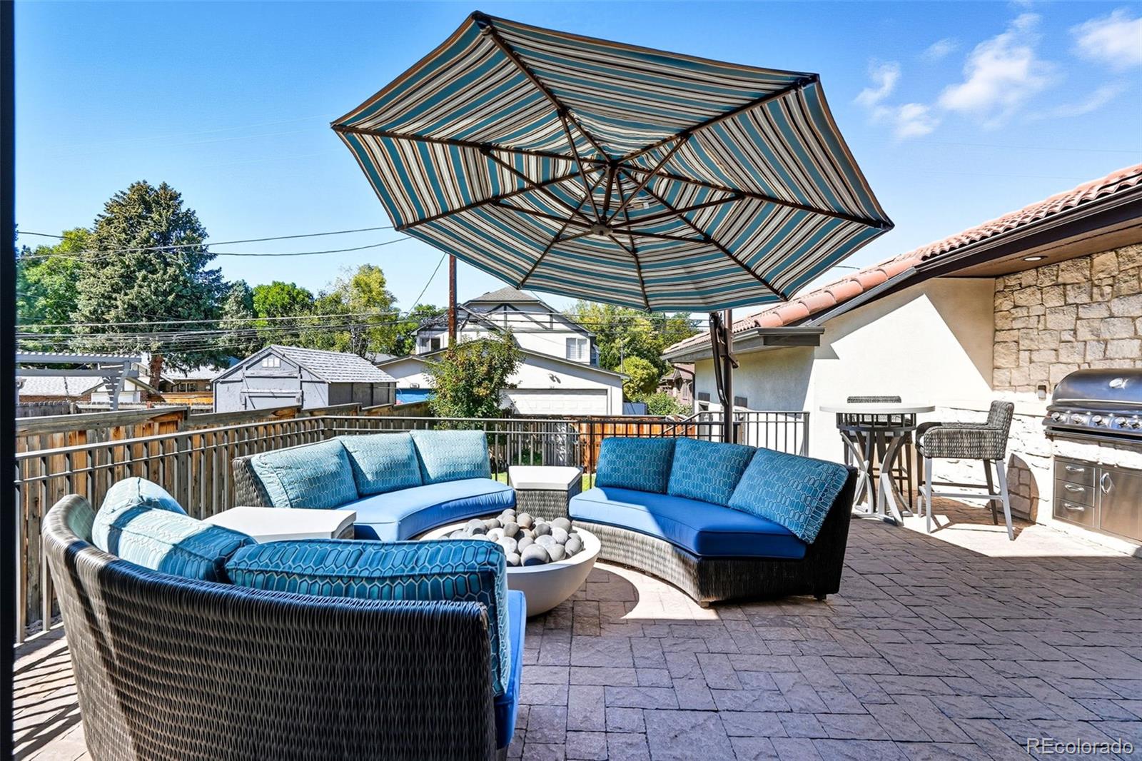 The finished basement expands the living space with two more bedrooms, a full bath with heated flooring, wet bar, game area, home theater, and storage. Outdoor living is just as impressive, with an expansive patio featuring a built-in grill, gas fire pit, and private yard.