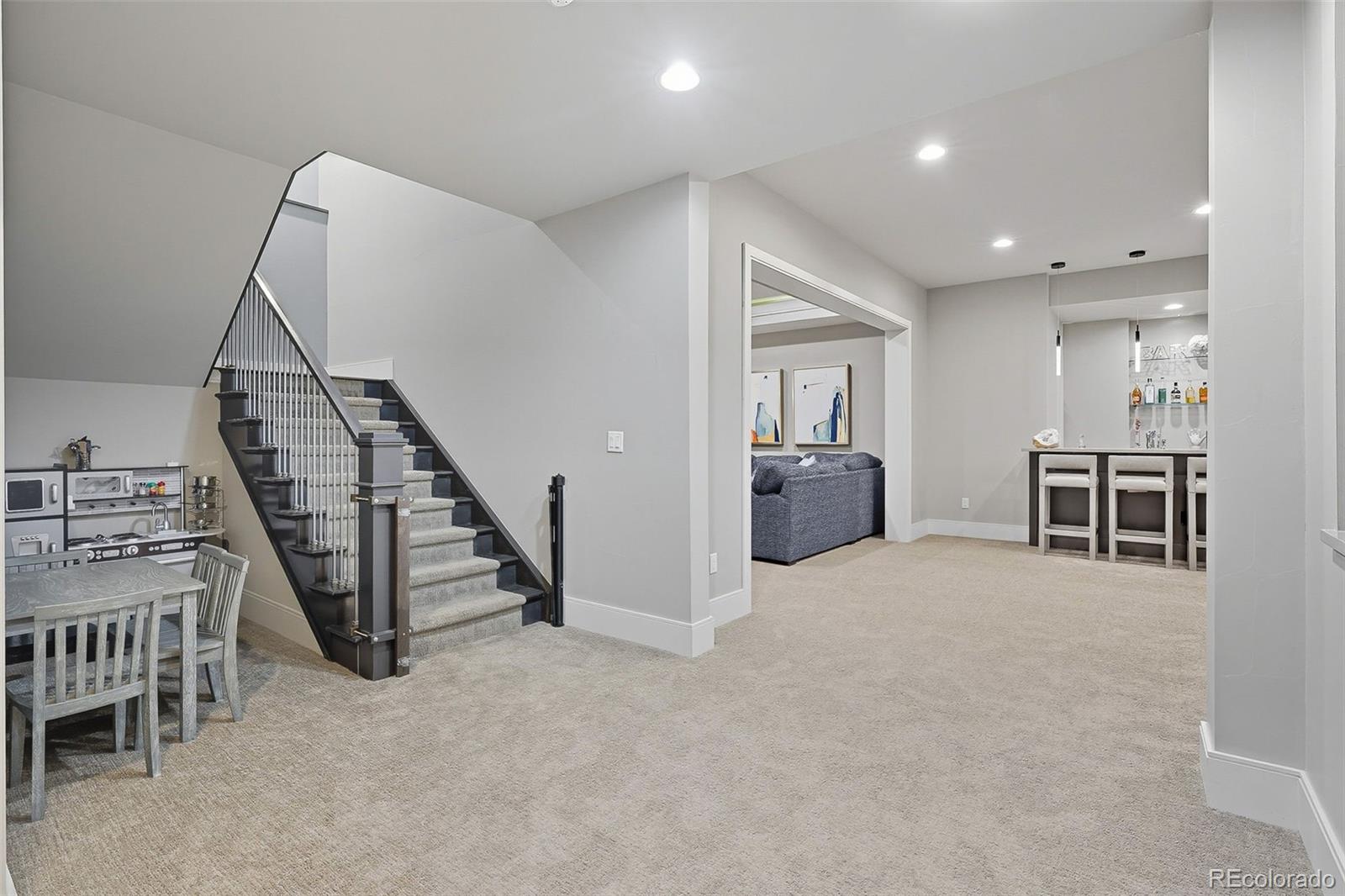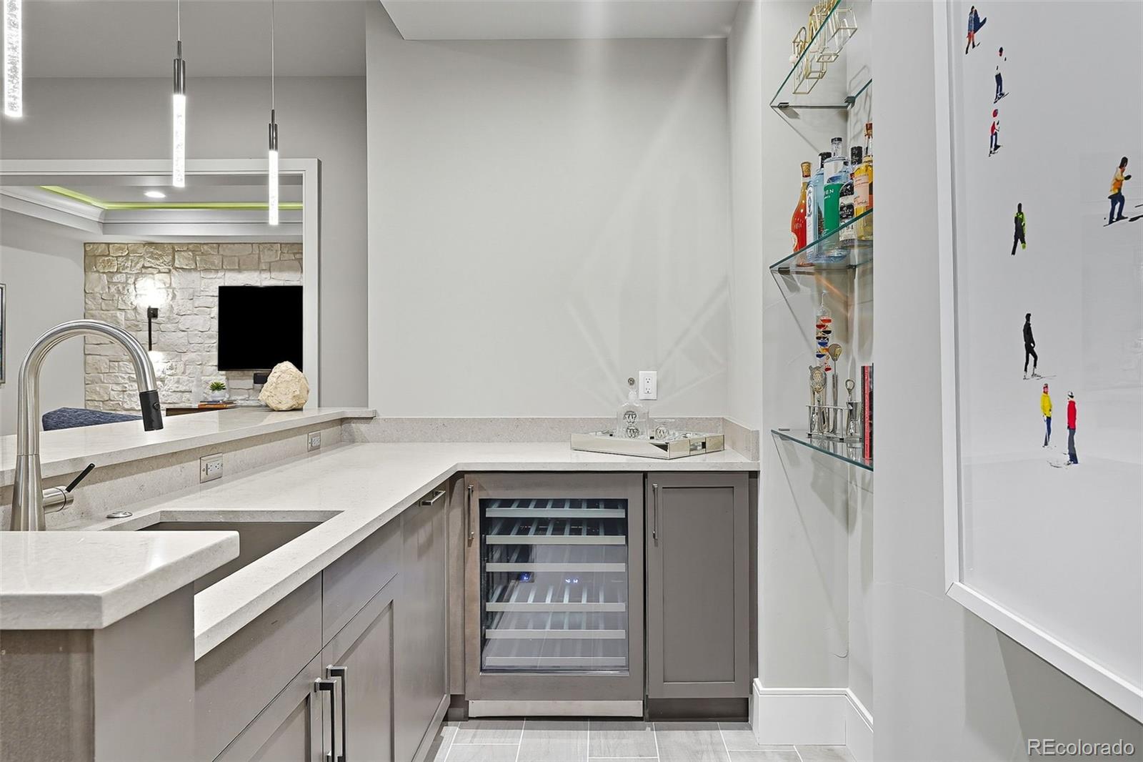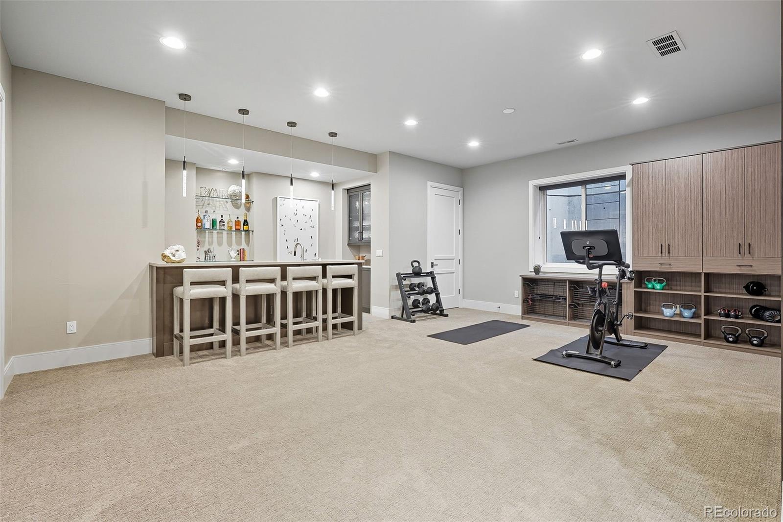 The finished basement expands the living space with two more bedrooms, a full bath with heated flooring, wet bar, game area, home theater, and storage. Outdoor living is just as impressive, with an expansive patio featuring a built-in grill, gas fire pit, and private yard.