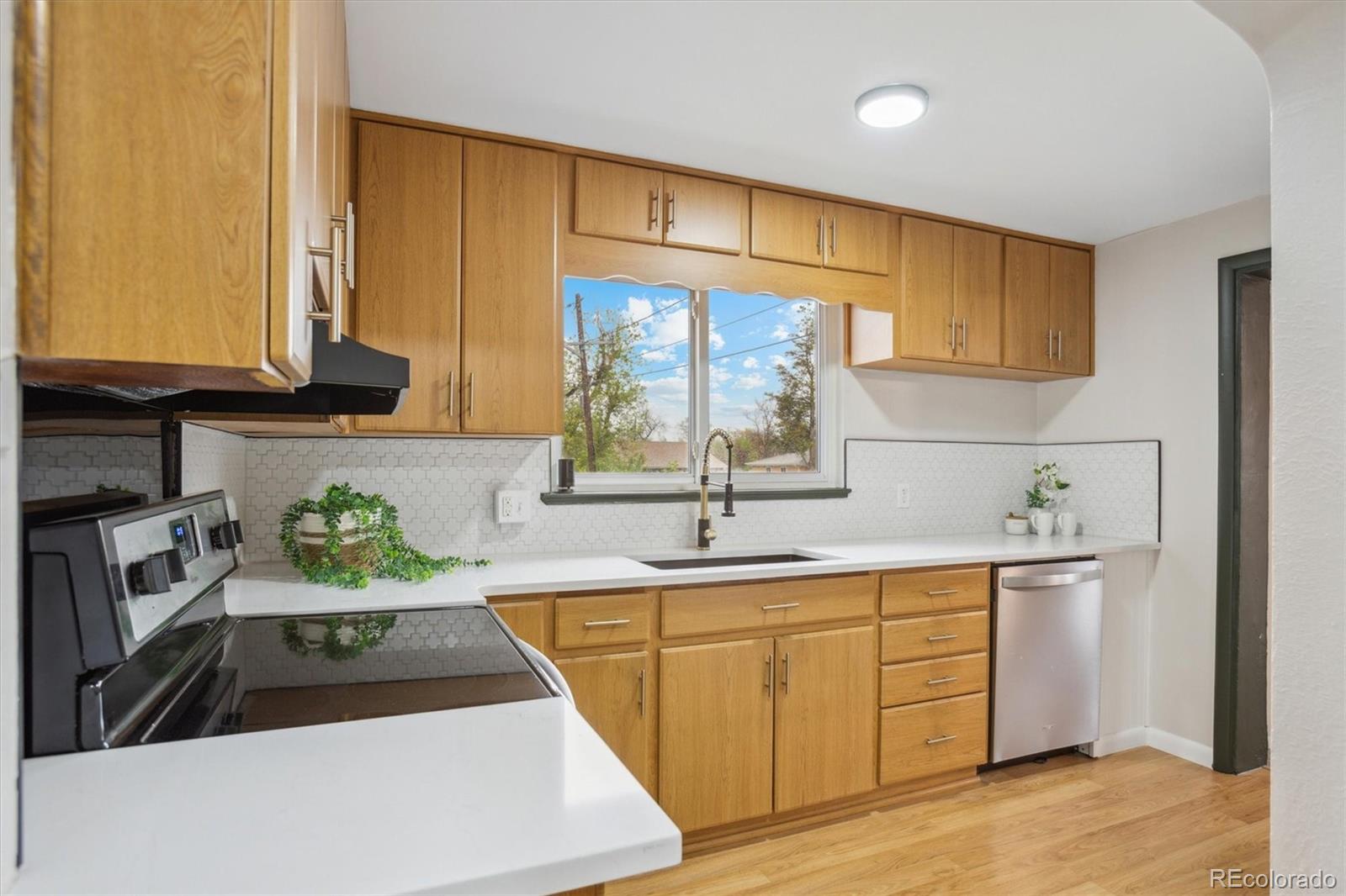 Looking for a quality single family home in a prime location? 5930 w 34th ave. is perfectly nestled on a quiet and tidy block, just steps from beautiful Panorama Park in Wheat Ridge. Enjoy an easy walk to coffee at Huckeberry or Bardo, or dinner at La Fonda or Belfiore. More options are right nearby at Tennyson, 38th ave, or Edgewater Market. This single level home features many recent updates and is sure to please. The bedrooms are good sized, and the bathroom is newly remodeled. Enjoy fresh carpet and paint throughout, along with stylish lighting and plumbing fixtures. The kitchen offers sleek quartz countertops and stainless appliances. Off the kitchen, you'll find a nice secondary living area, and there's also a great enclosed and air conditioned back porch - think grilled dinners overlooking your secluded back yard. Seriously, this is the solid starter home that barely exists anymore. With central air, tankless hot water, and a brand new roof, you'll be living in carefree comfort for years to come. Swing by and see what "Sweet Ridge" has to offer.